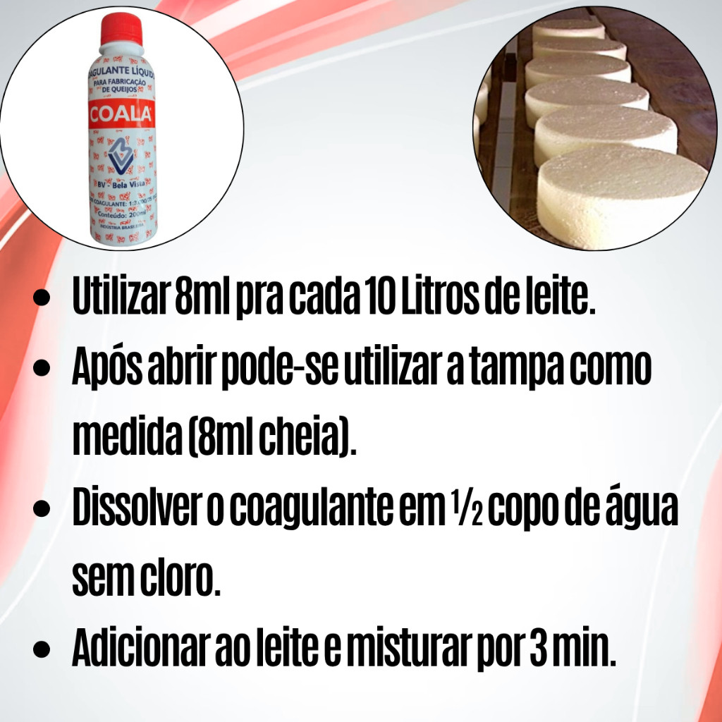 Forma queijo 1kg (Especial e reforçada) + Coalho Líquido Coala 200ml de Queijo Minas Frescal Ricota