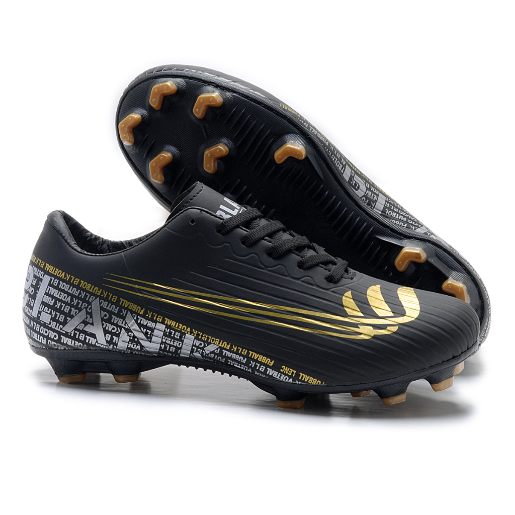 Chuteira Campo Preta Dourado Cano Baixo Blank Star com Solado Costurado 34 ao 45 Reforçada