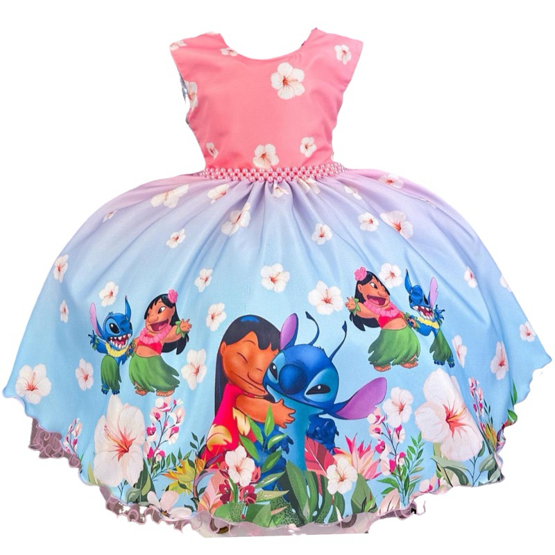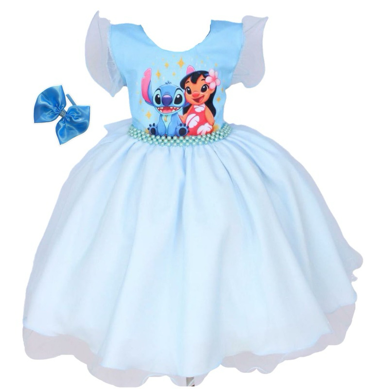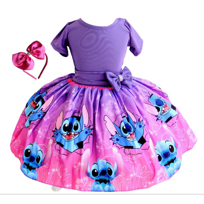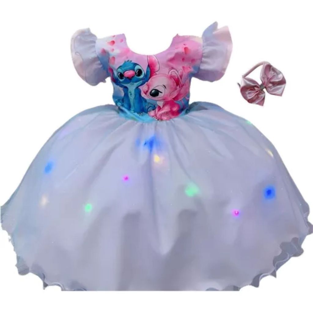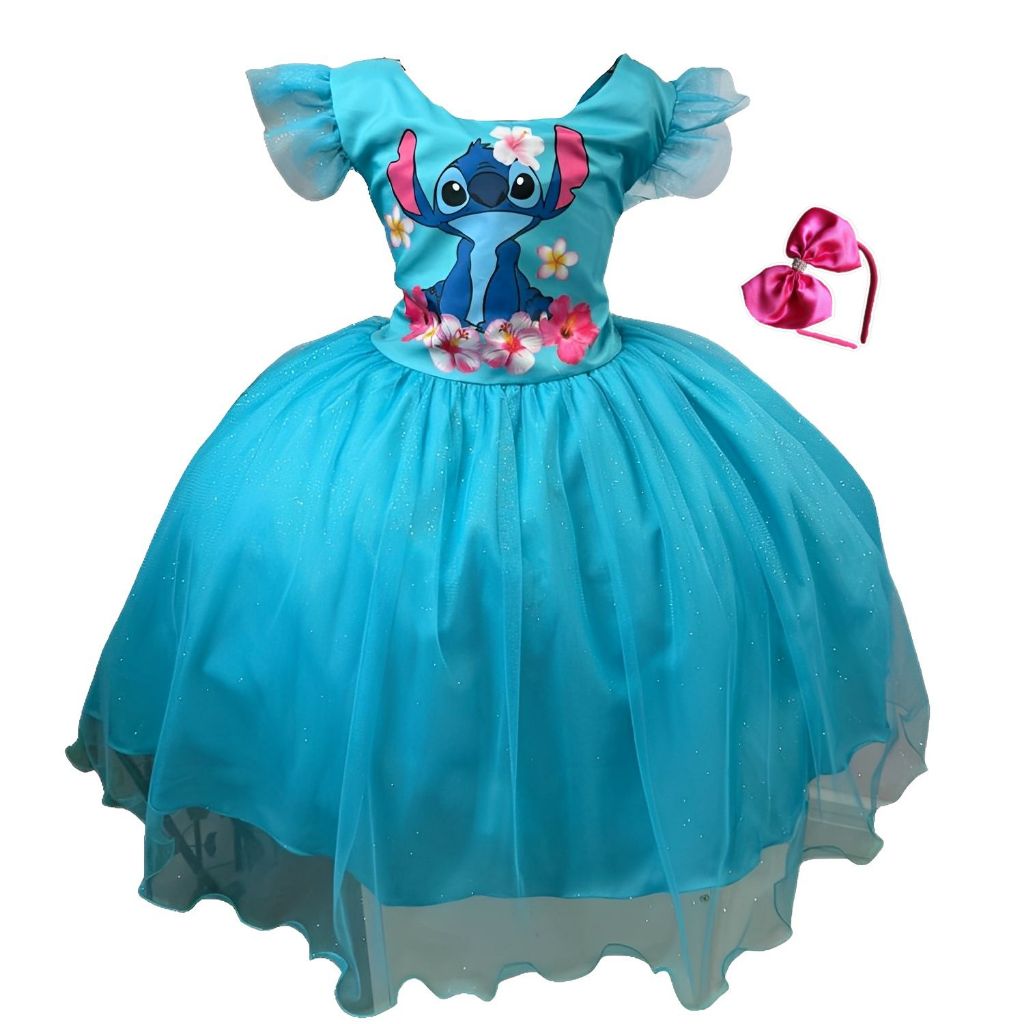 Vestido Infantil Stitch de Luxo com Tiara