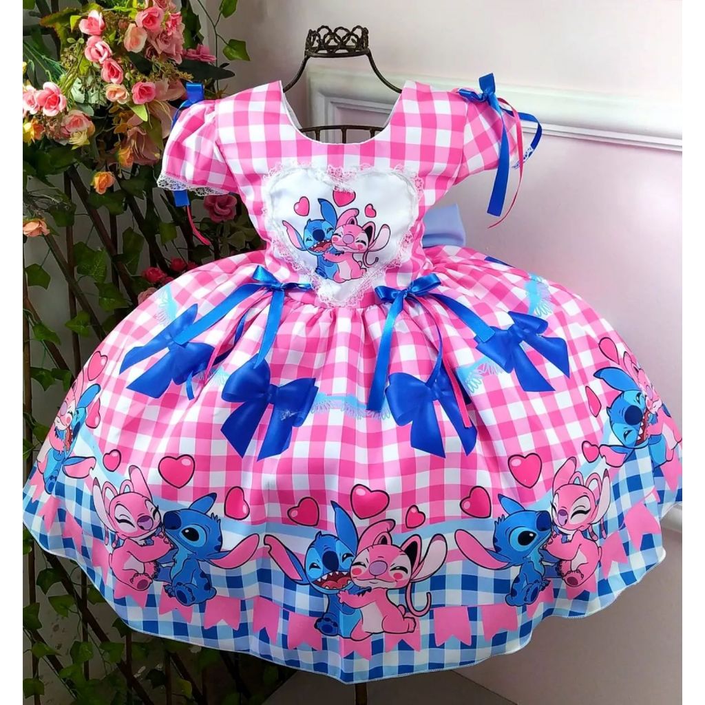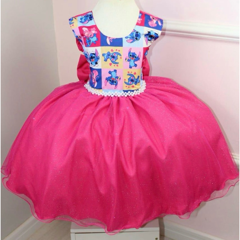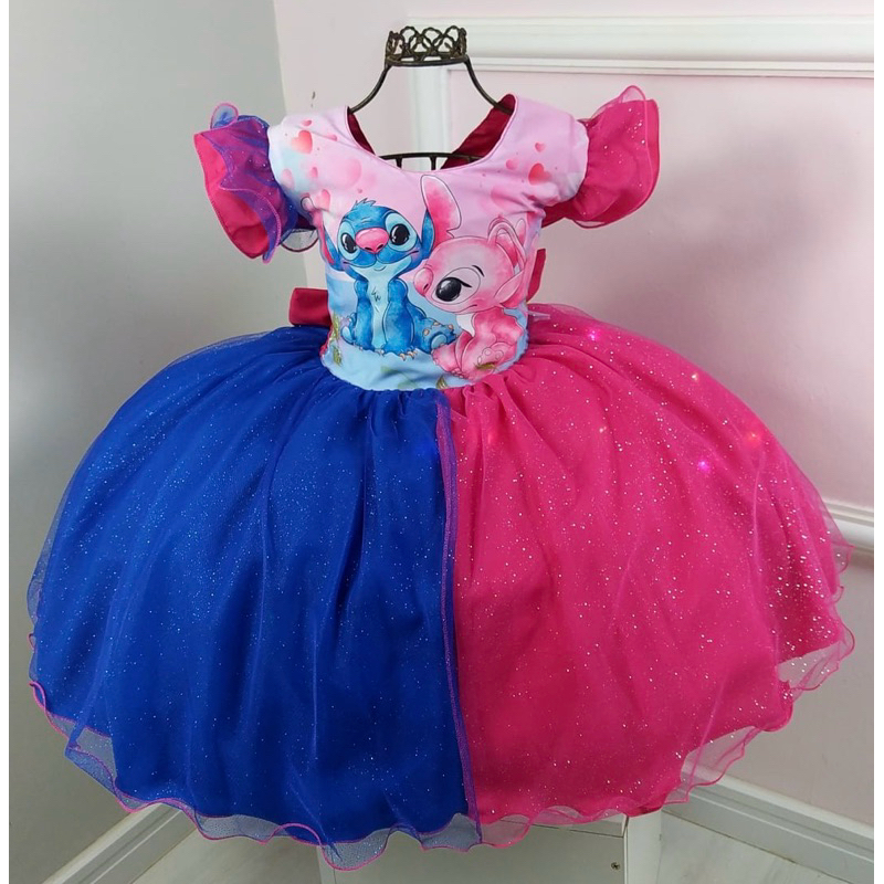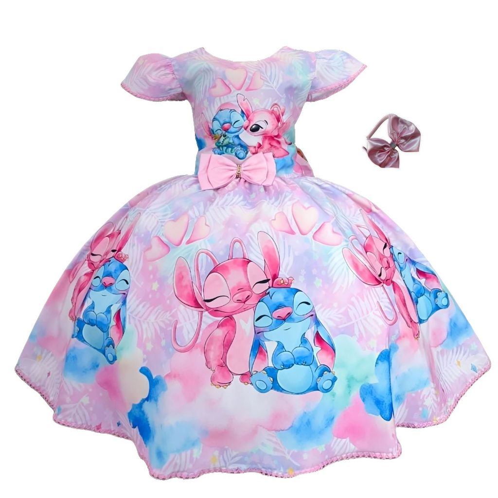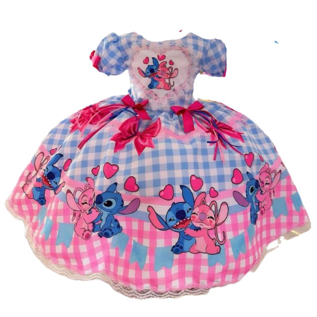 Vestido Infantil Stitch de Luxo com Tiara