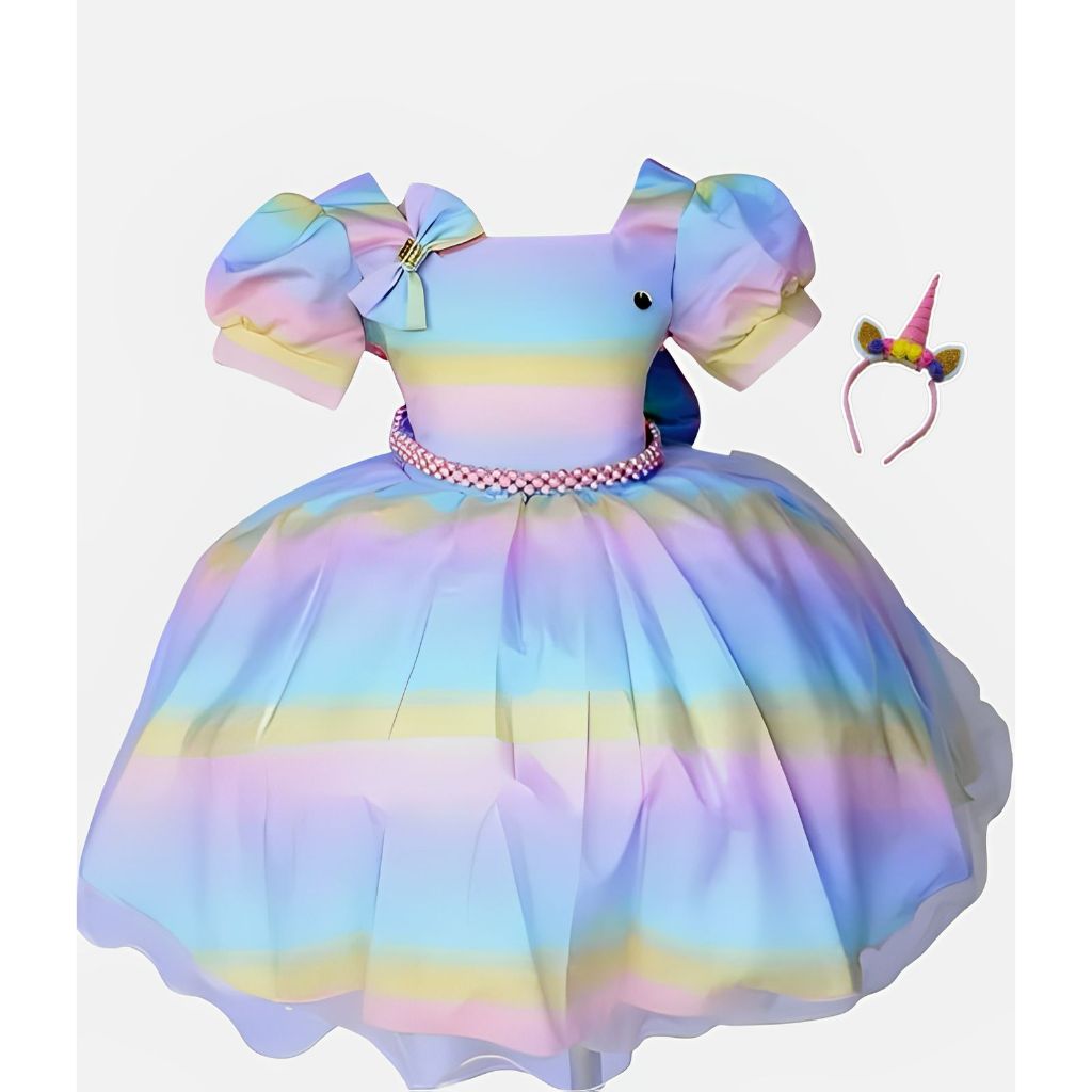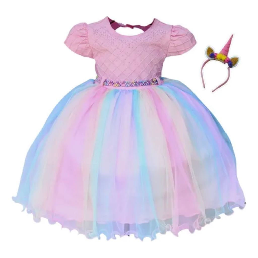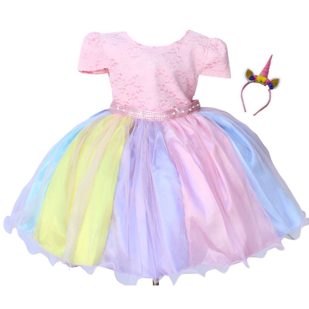 Vestido Festa Infantil Unicornio Frutacor Super Luxo com Tiara