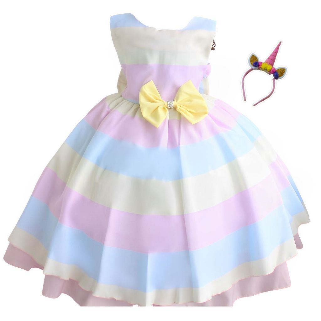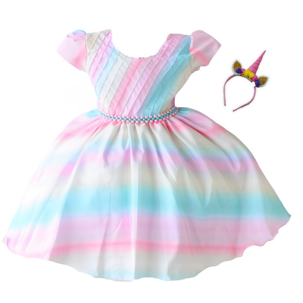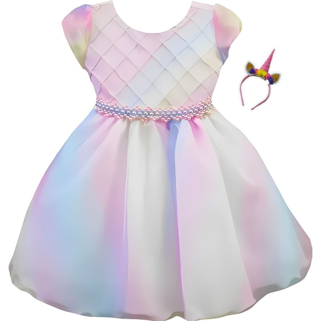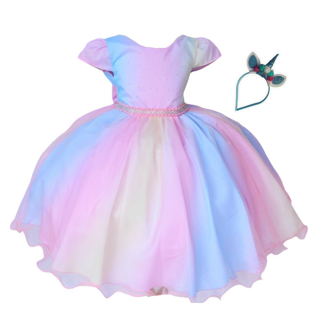 Vestido Festa Infantil Unicornio Frutacor Super Luxo com Tiara