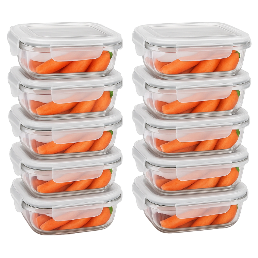 Pote Hermético 370/525/640 ML Vidro Retangular C/ Válvula Ar Marmita Fit