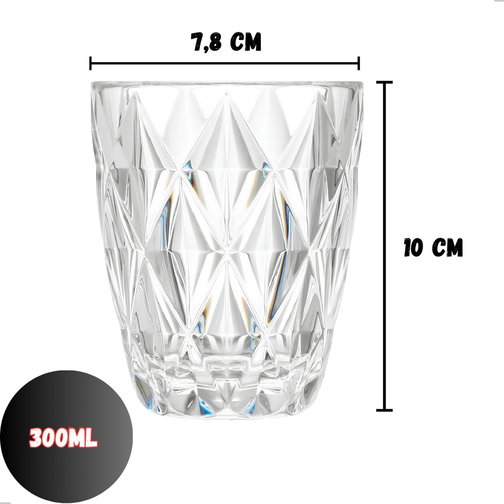 Jogo 6 Copos Baixos Diamond 300ml Vidro Grosso Diamante Luxo