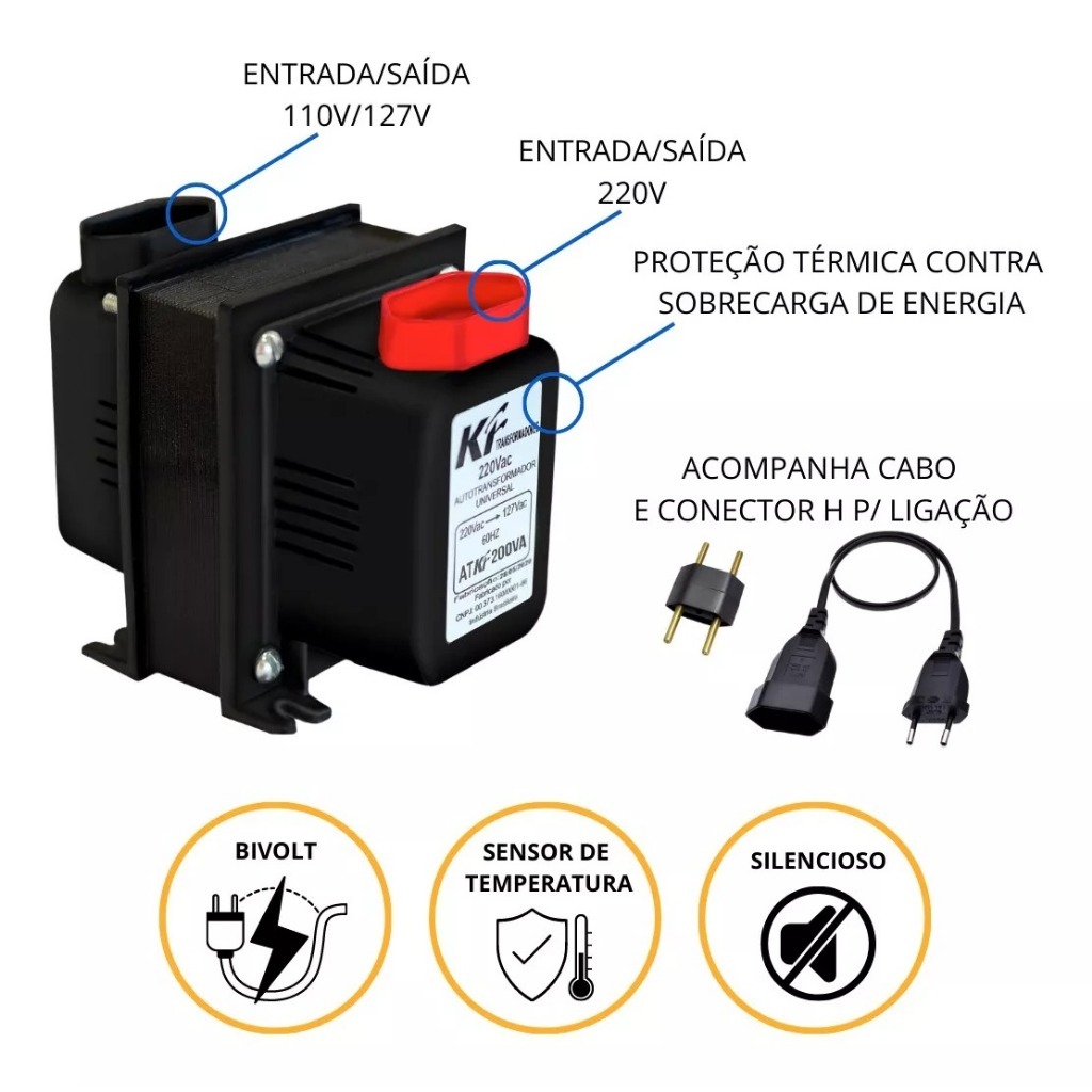 Auto Transformador 200va Para Ventilador Máquina Costura Conversor 110v P/ 220v e 220 P/ 110