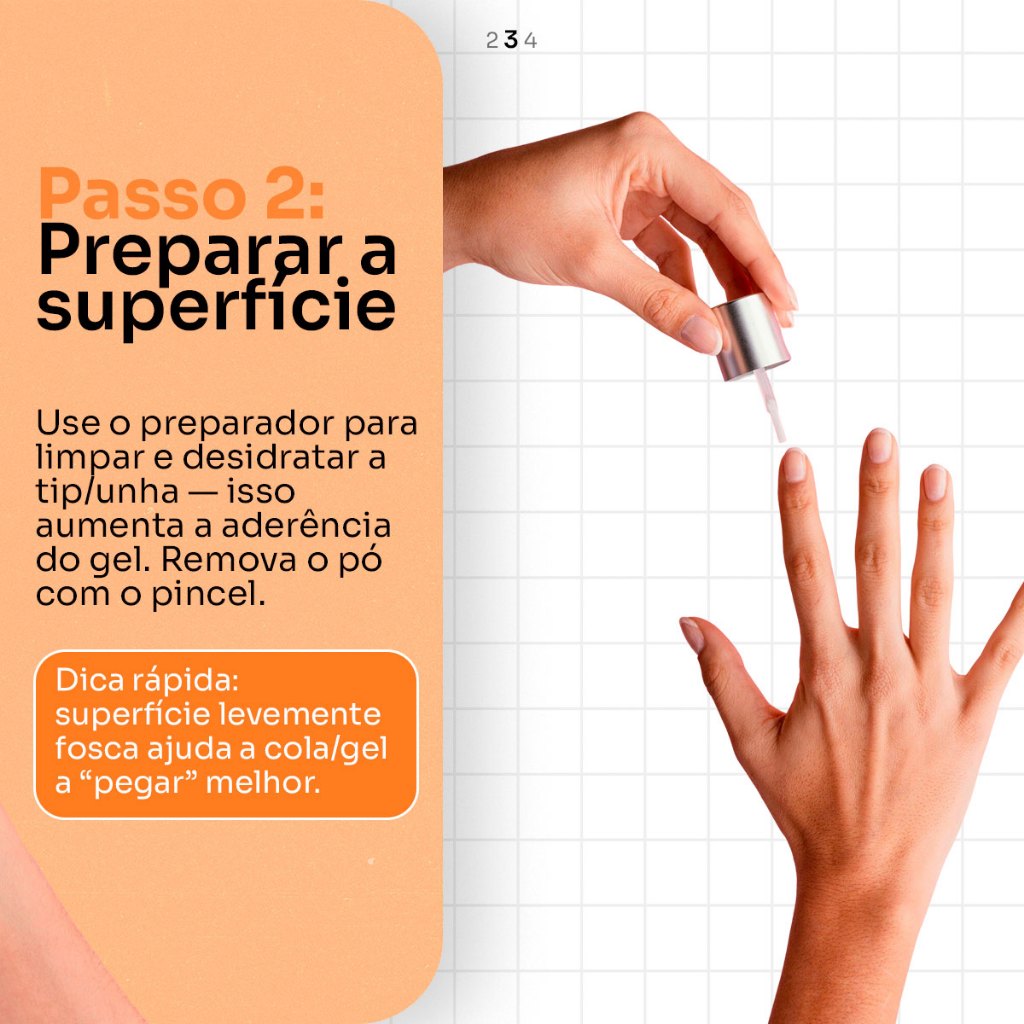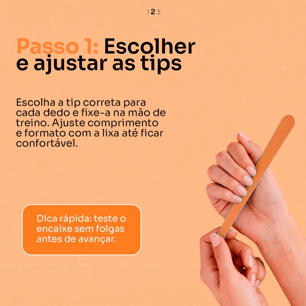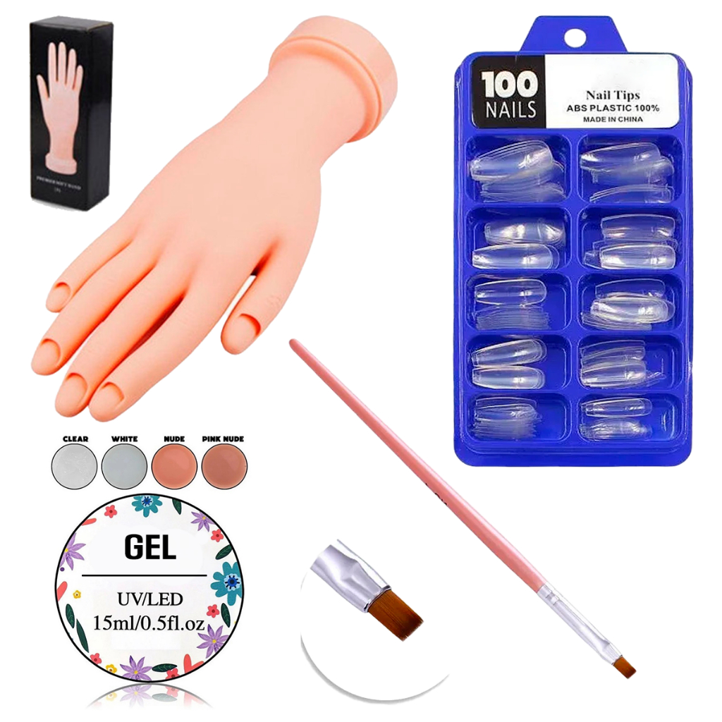 Kit Mão de Treino Completo Gel Tips Pincel Primer Cortador Lixa Manicure Unhas Gel Porcelana Fibra