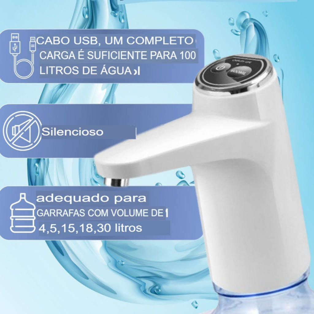 Bomba Elétrica Garrafão Galão Água 20 Litros Dispensador Recarregável USB Premium