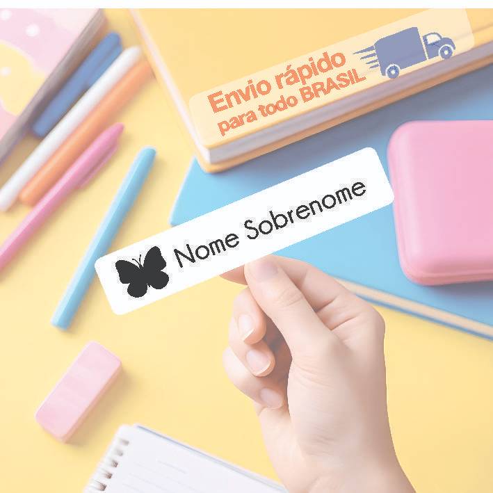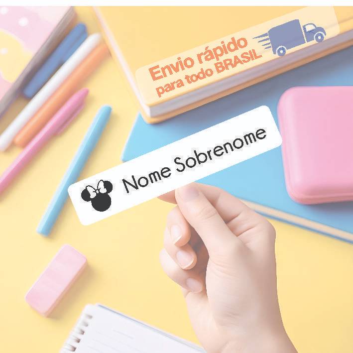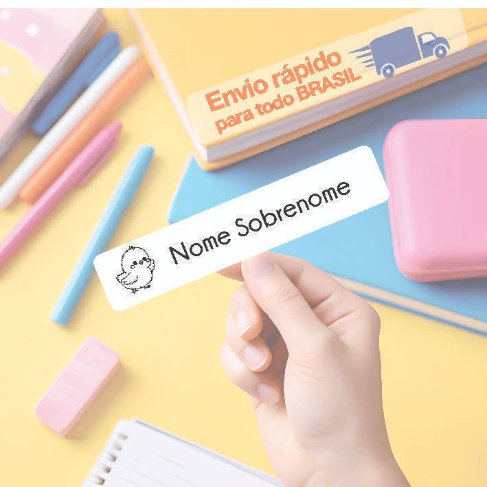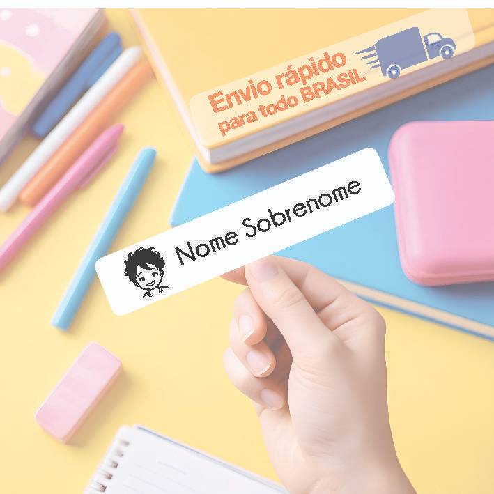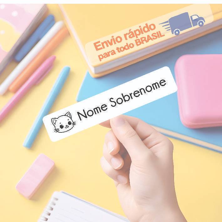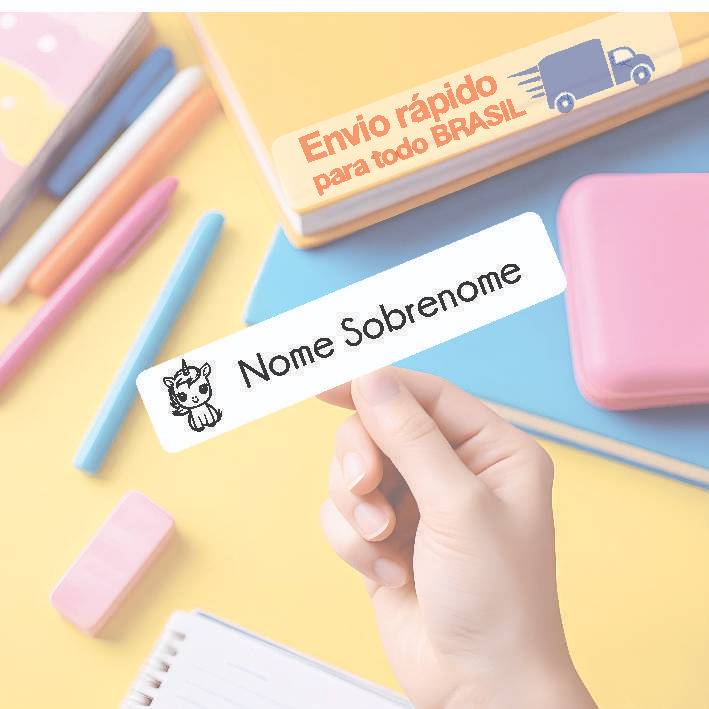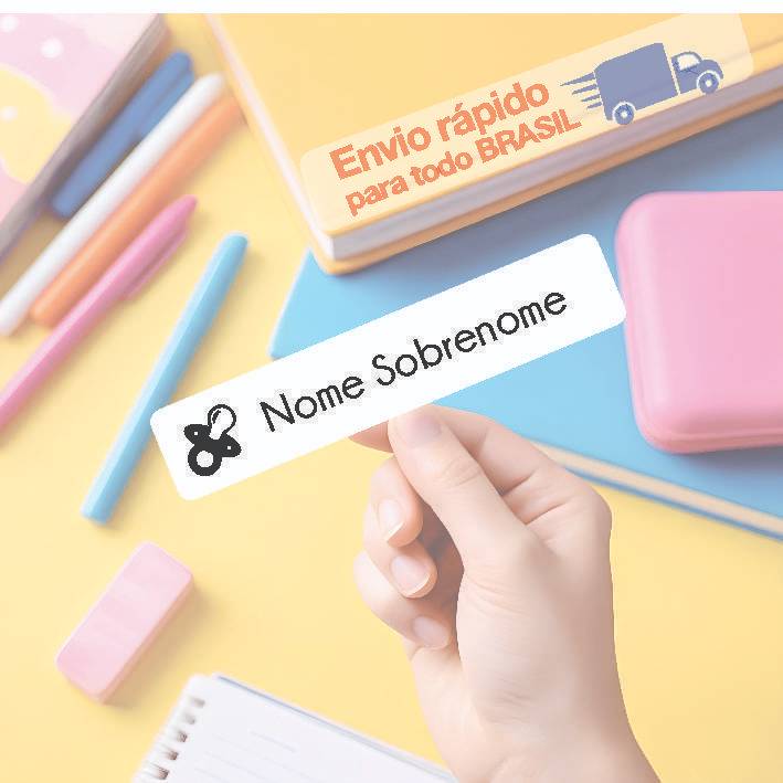 Etiqueta 50x10mm Transparente Folha com 70 unid Personalizada para Identificação Material Escolar