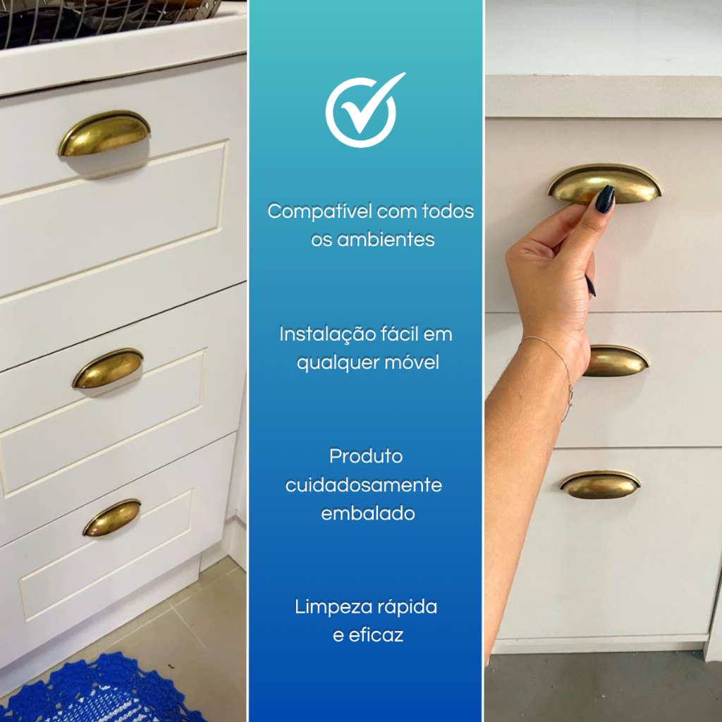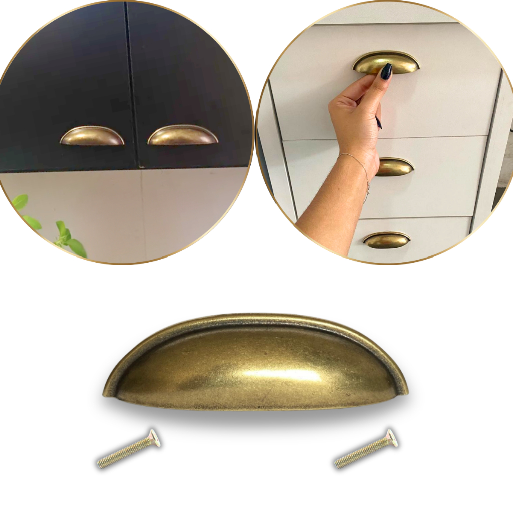 1 Puxador Concha Meia Lua, Ouro Velho Estilo Retrô, para Gaveta, Armário, Móveis, em Metal