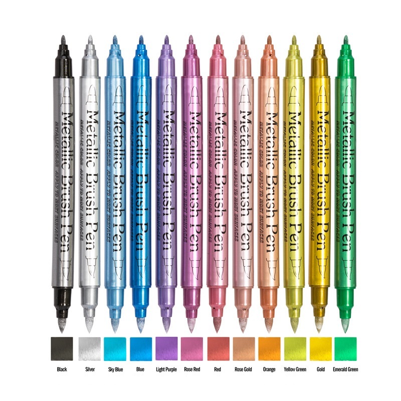 Marcador Acrílico Permanente para Desenho 3/12 Cor Impermeável Caneta Metálica Graffiti DIY Brush Pen Material De Arte