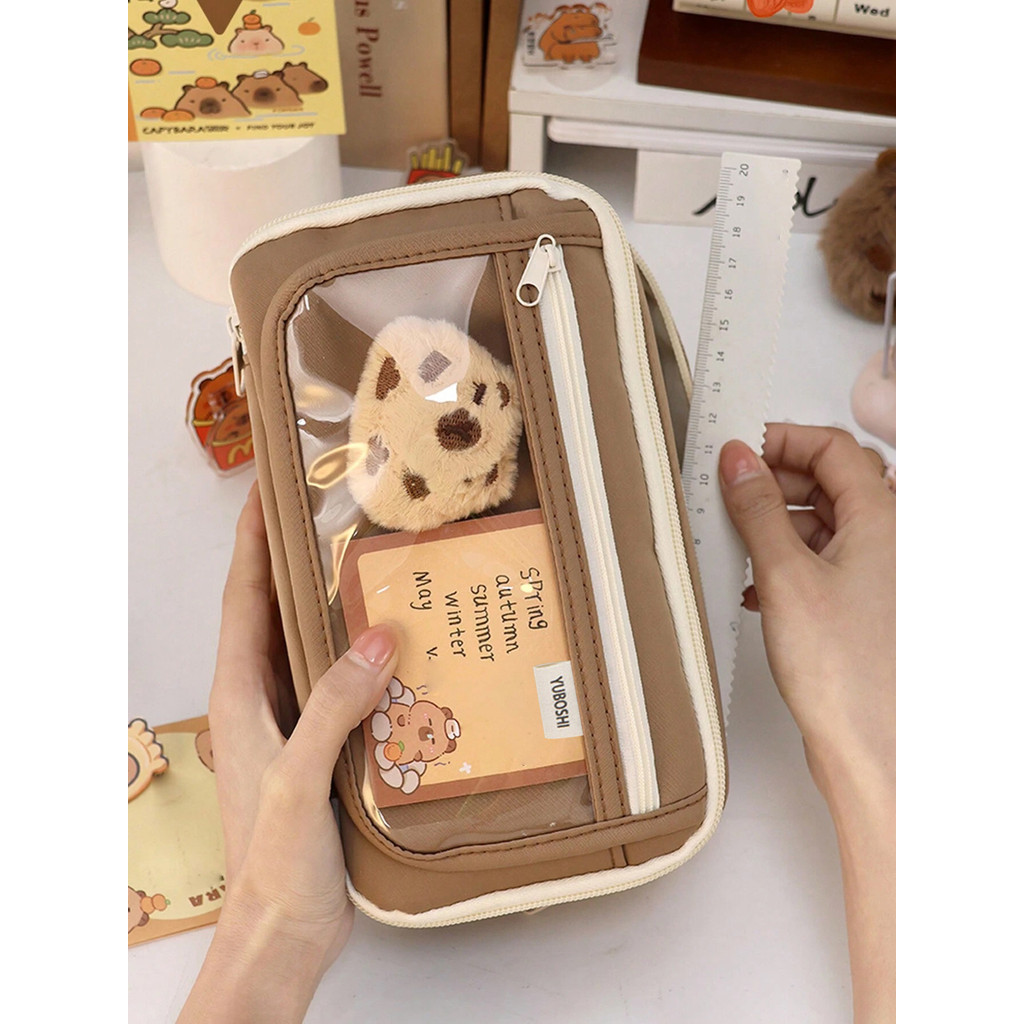Grande Capacidade Kawaii Lápis Caso Saco Flip Capa Caixa Simples Para Studnets De Volta Às Aulas Material De Escritório