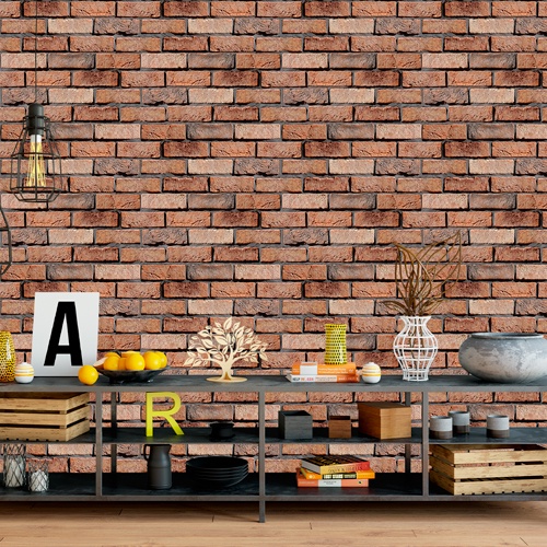Papel de Parede Adesivo Tijolinho Realista em Tons de Marrom Cozinha Churrasqueira Sala Quarto