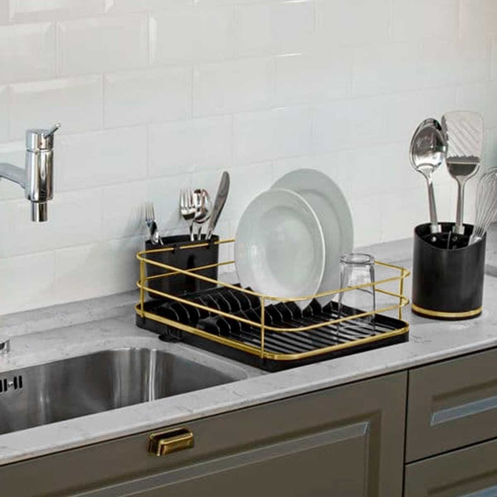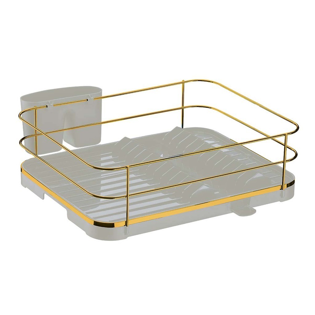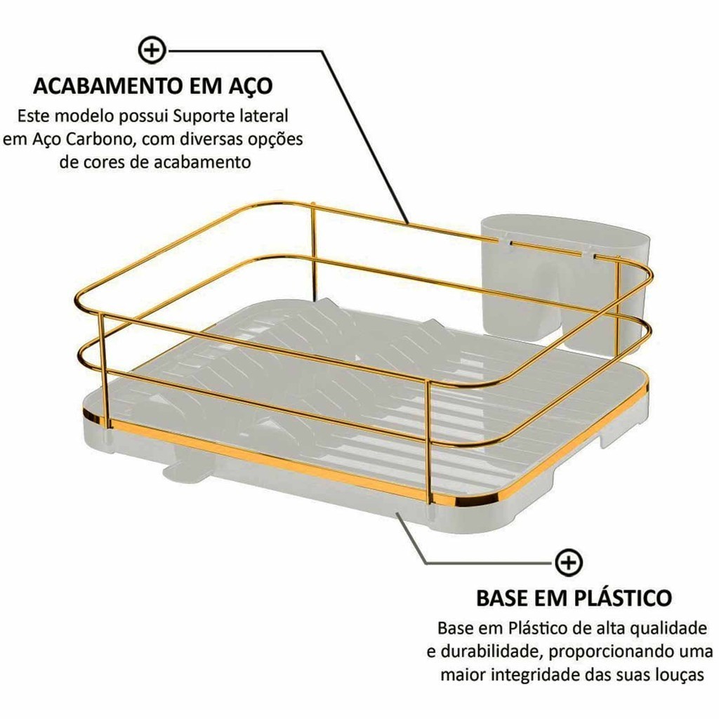 Escorredor de Prato Bandeja Coletora Branco Dourado