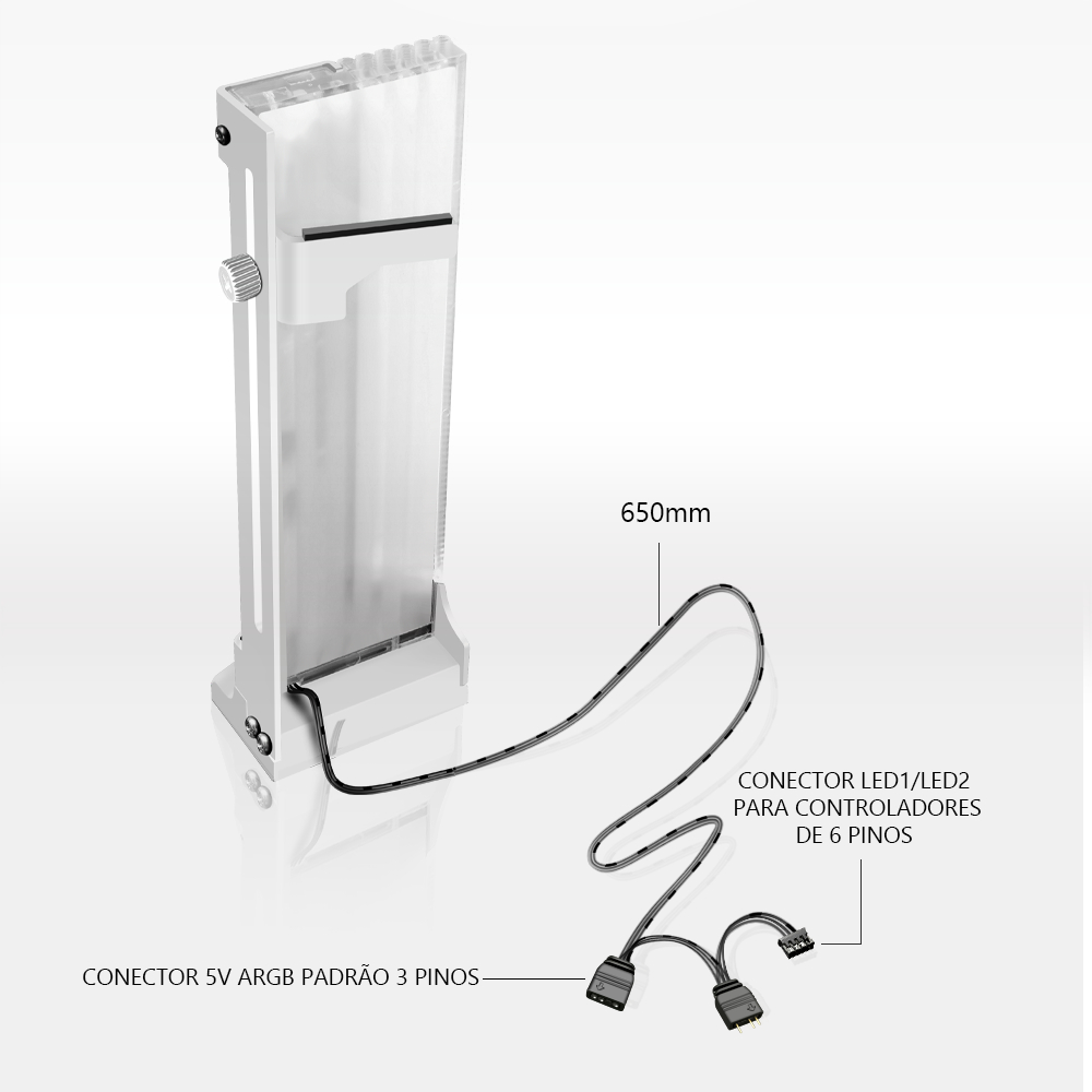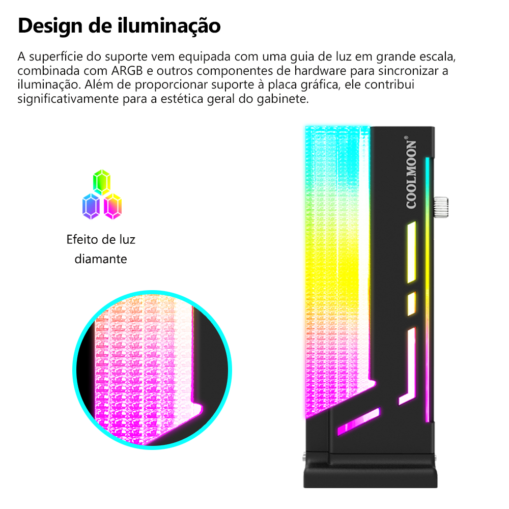 SUPORTE PLACA DE VÍDEO (VGA GPU) VERTICAL, LED ARGB 5V, PRETO, GH2 COOLMOON