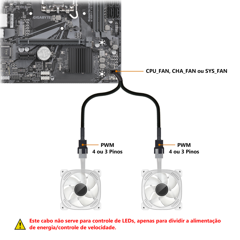 Cabo Splitter PWM Para Cooler Fan 3 ou 4 Pinos PCM 2 Portas - Placa Mãe