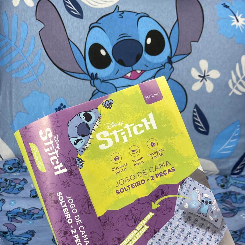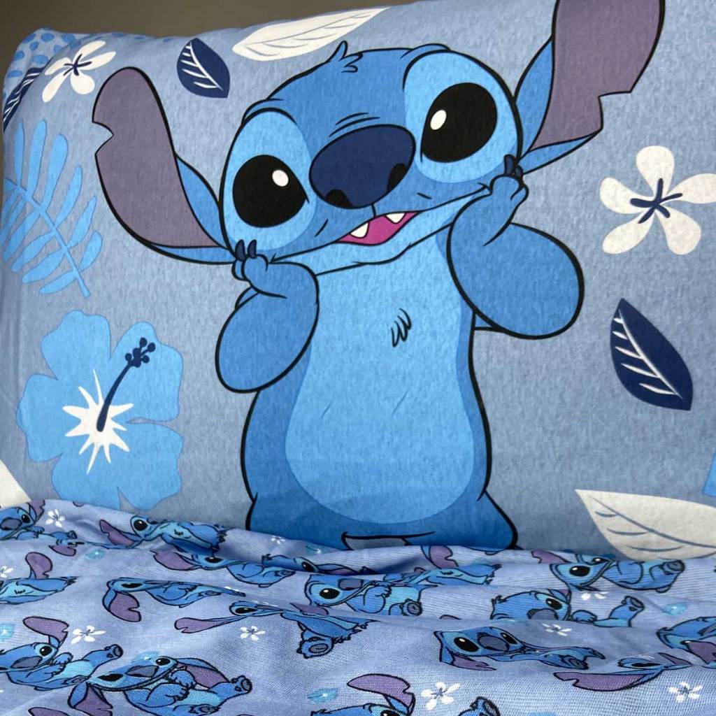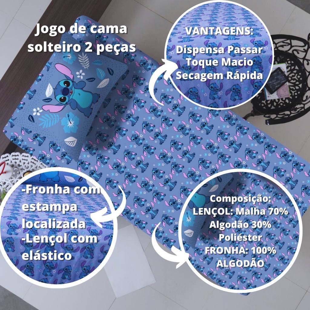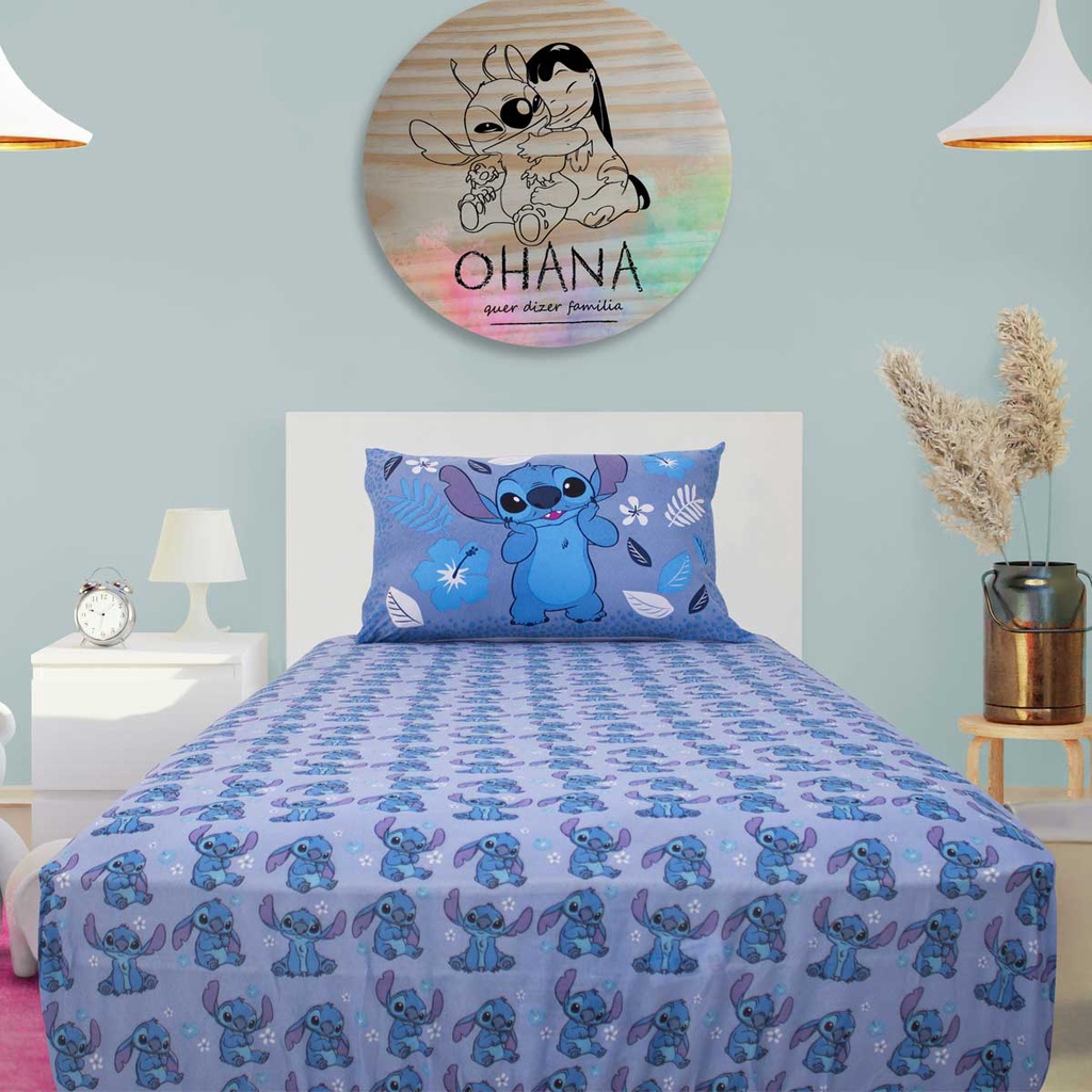Jogo De Cama Infantil Lilo & Stitch Blue Solteiro Disney Simples 2 Peças Malha Portallar