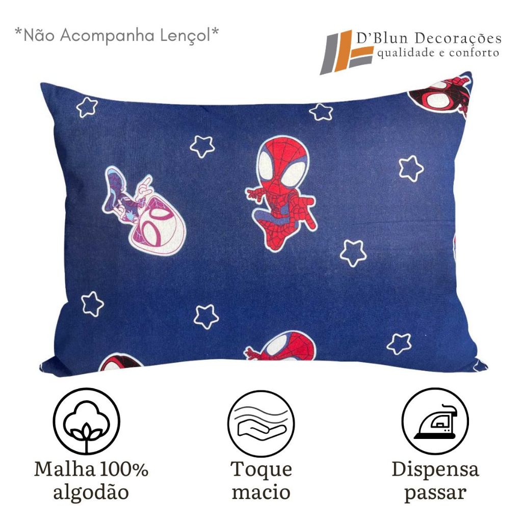 Fronha Homem Aranha Infantil Avulsa Meninos Malha 100% Algodão 48cm x 68cm Blue Spider Portallar