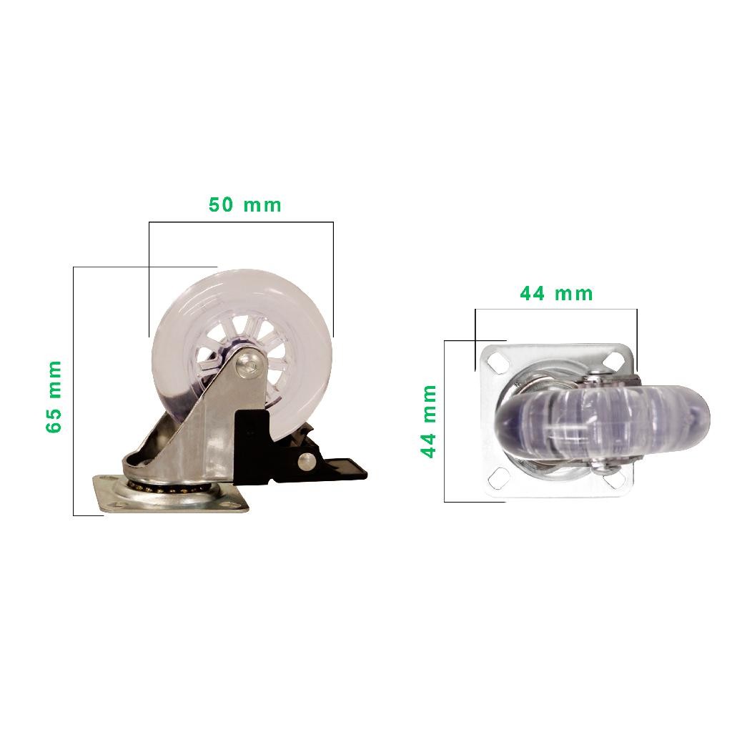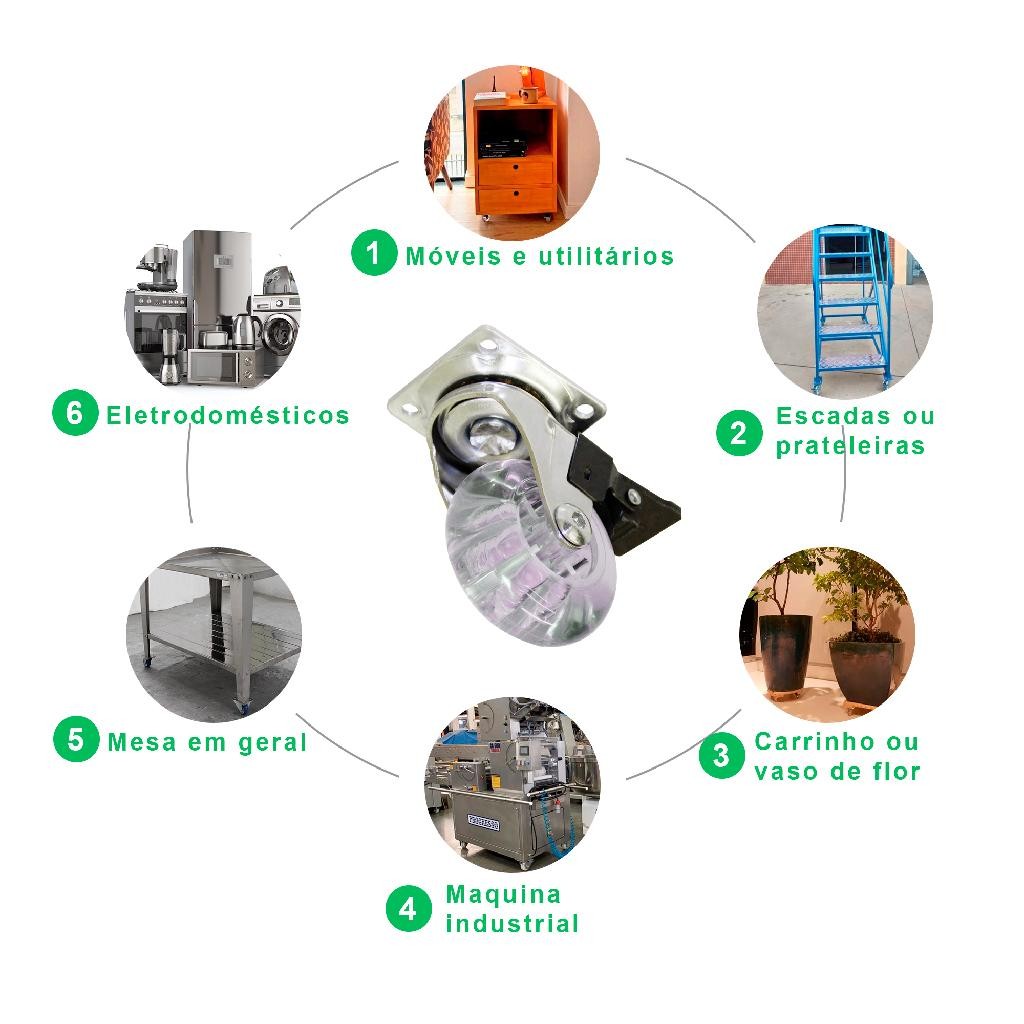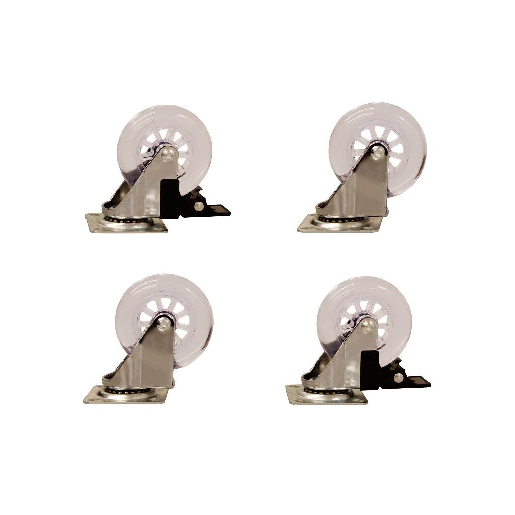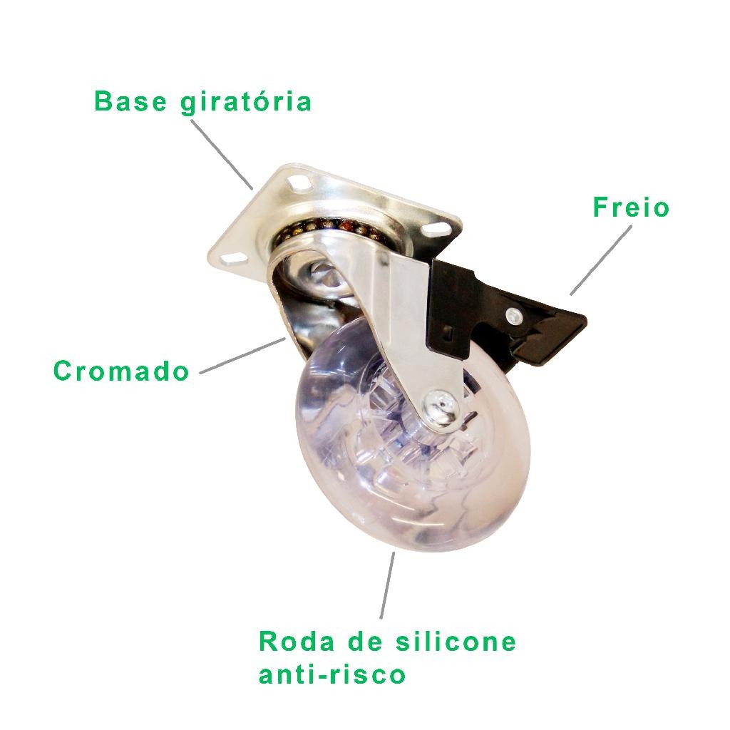 Kit 4 Rodízios Rodinha Silicone Giratório 50MM Sendo 2 Com Freio e 2 Sem Freio