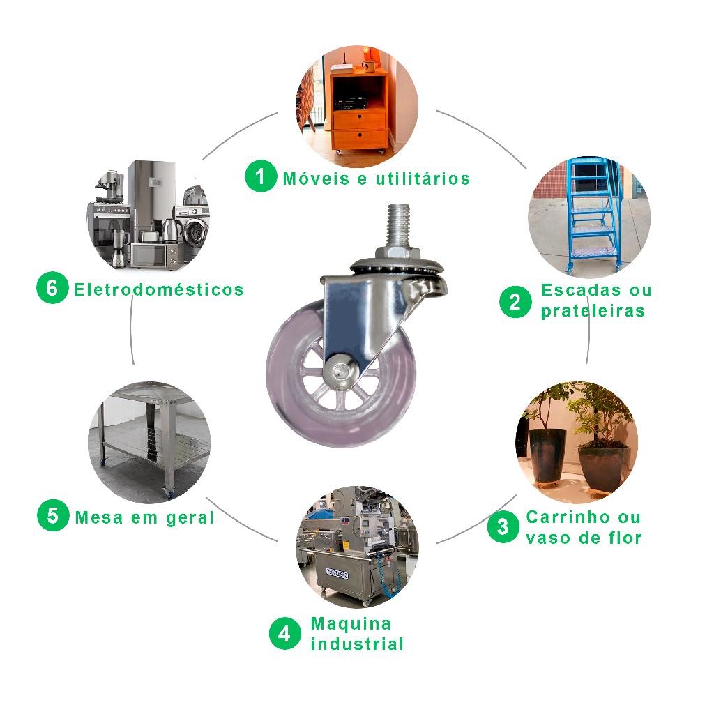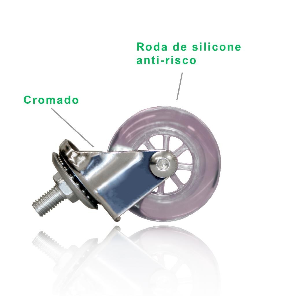 Kit 4 Rodízios Rodinha Silicone Giratório 50MM C/ Parafuso C/ e S/ Freio Para Imóveis
