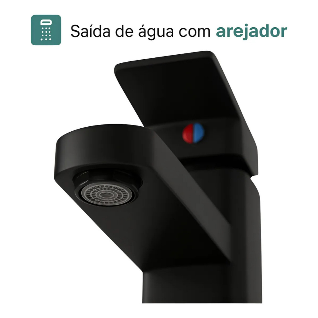 Torneira Banheiro Acabamento Luxo Quadrada ¼ De Volta Cromado Preto