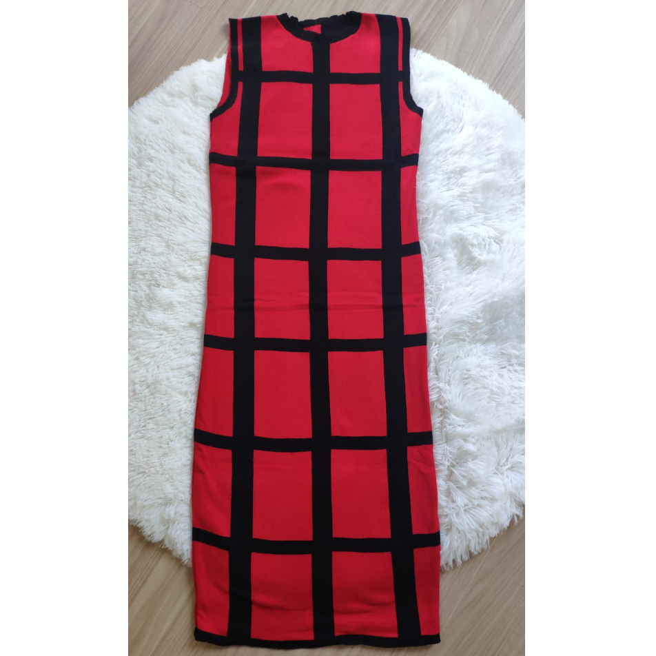 PROMOÇÃO Vestido tricot modal regata estampa com quadrados duas cores, possui elasticidade