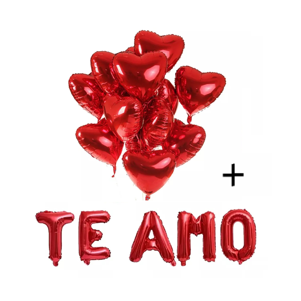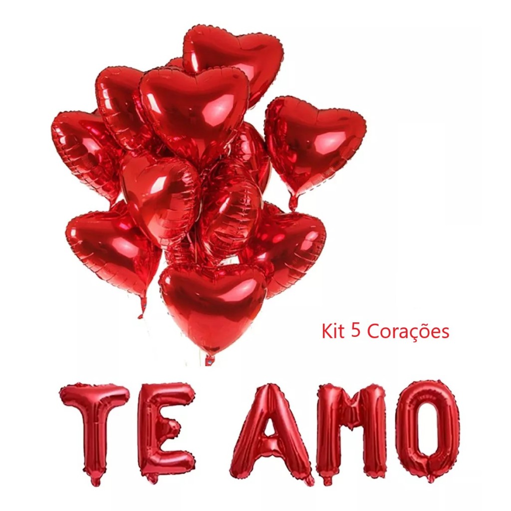 Kit Balão Letra Te Amo + Corações 45cm Vermelho Dia Dos Namorados, Casamento, Declaração surpresa