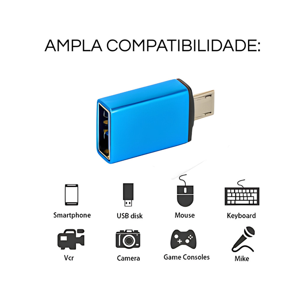 Adaptador Otg Tipo C 3.0 Usb Azul Metálico para Smartphone Celular Tablet Pendrive Mouse Teclado
