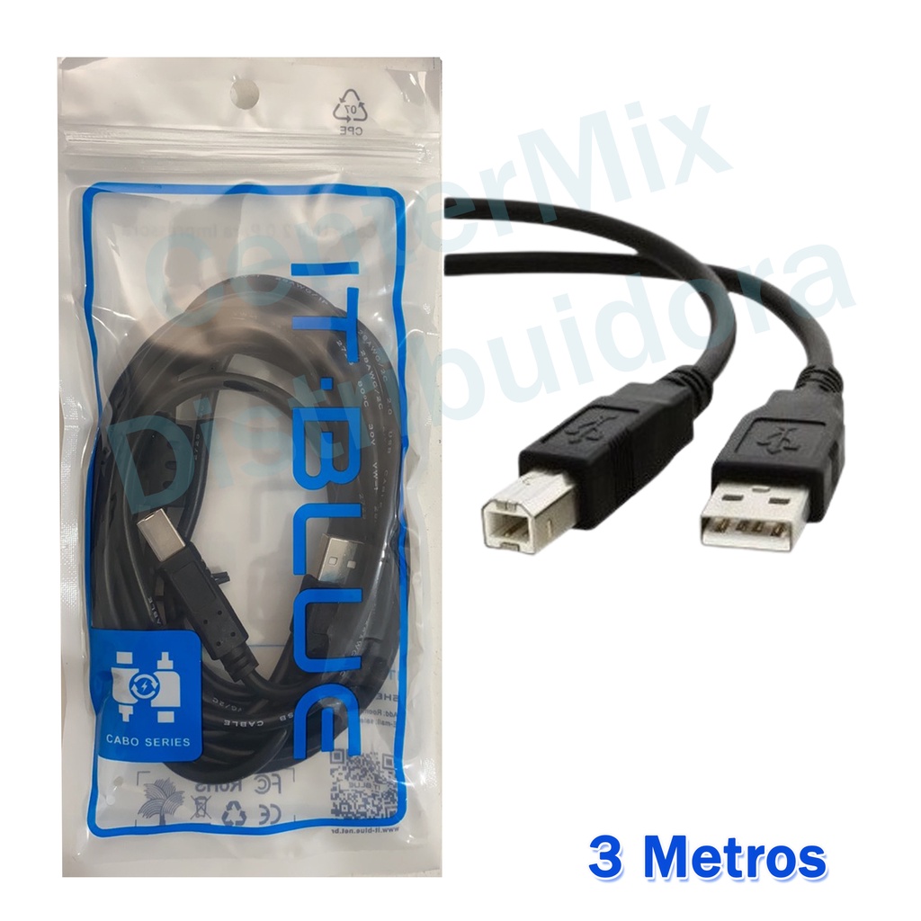 Cabo Para Impressora 3 Metros USB 2.0 Cabo Usb Impressora hp Canon Epson