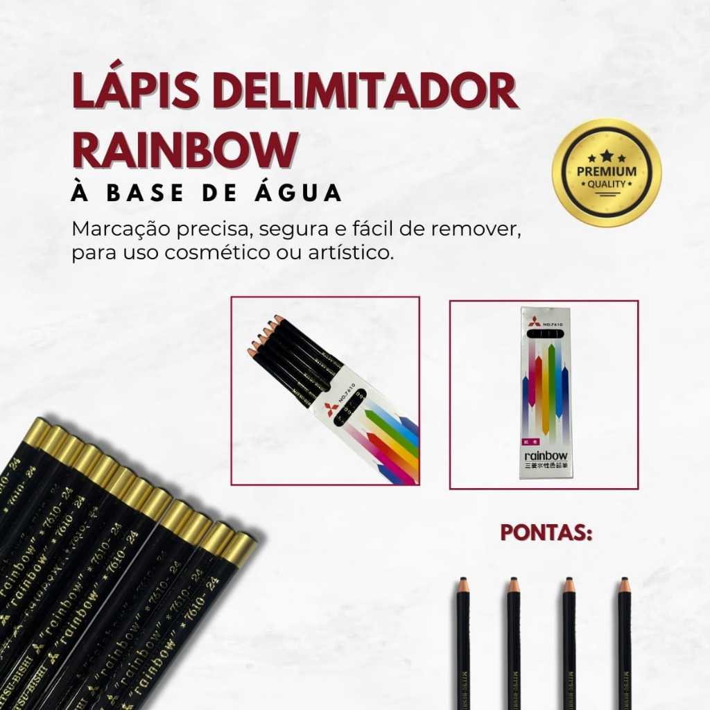 1 Lápis para Sobrancelha Dermatográfico Preto Rainbow 7610 Mitsubishi Original