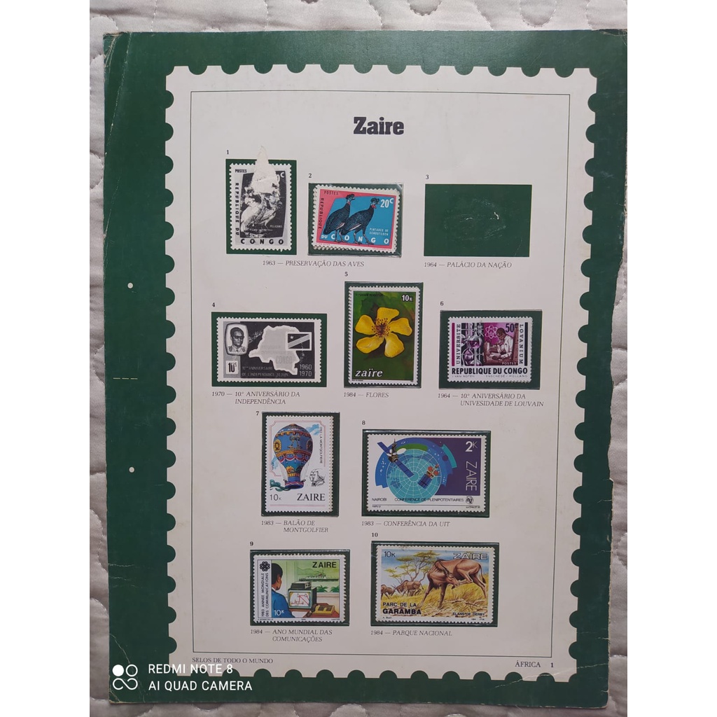 Coleção 15 selos antigos (Cuba, Zaire e Congo)