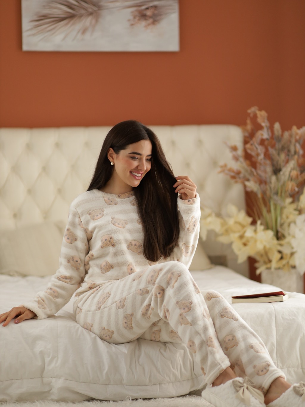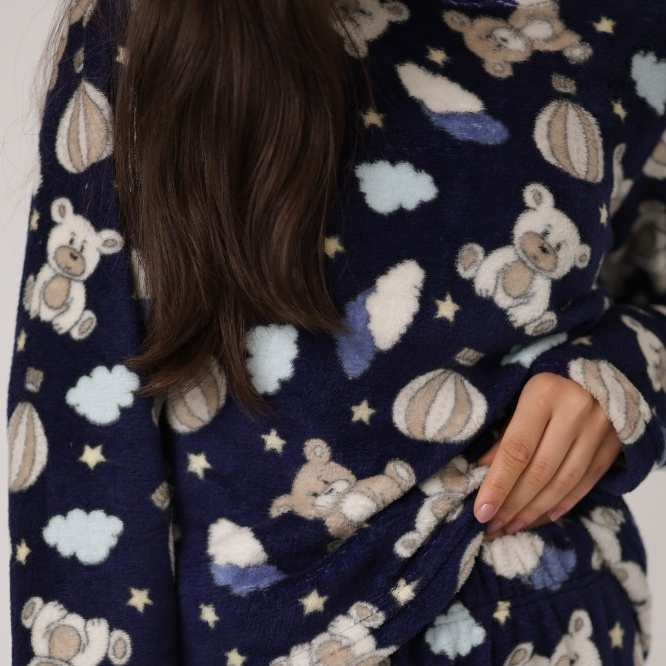 Pijama Feminino Longo Fleece Peludinho Ted Inverno Fechado