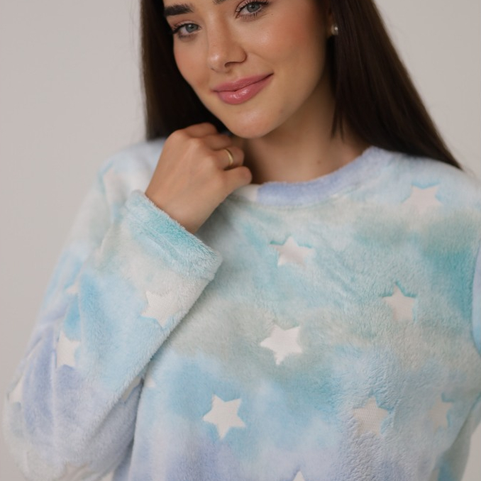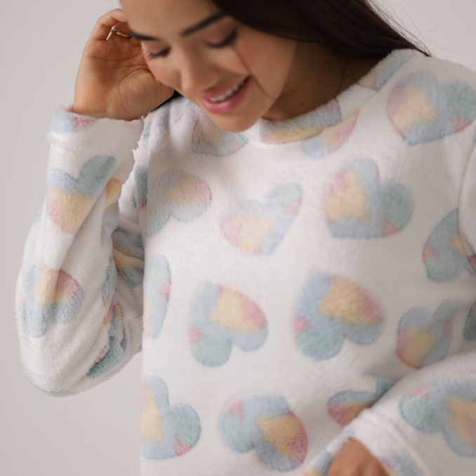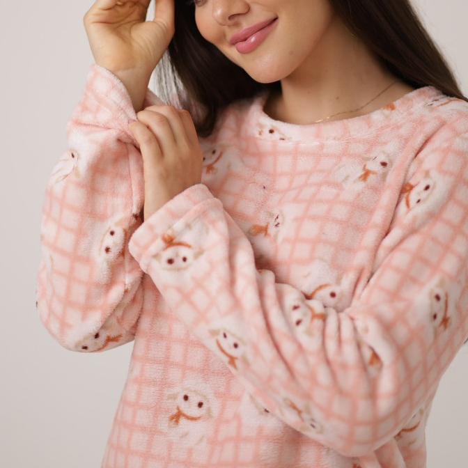 Smara Modas Pijama Feminino Fleece Longo Peludinho Ted Quentinho Inverno Fechado Presentes