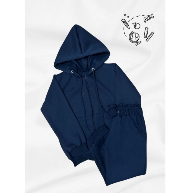 Conjunto Escolar Colegial Masculino Aberto com Zíper, bolso e capuz - Infantil e Infanto Juvenil - 2 ao 16 anos