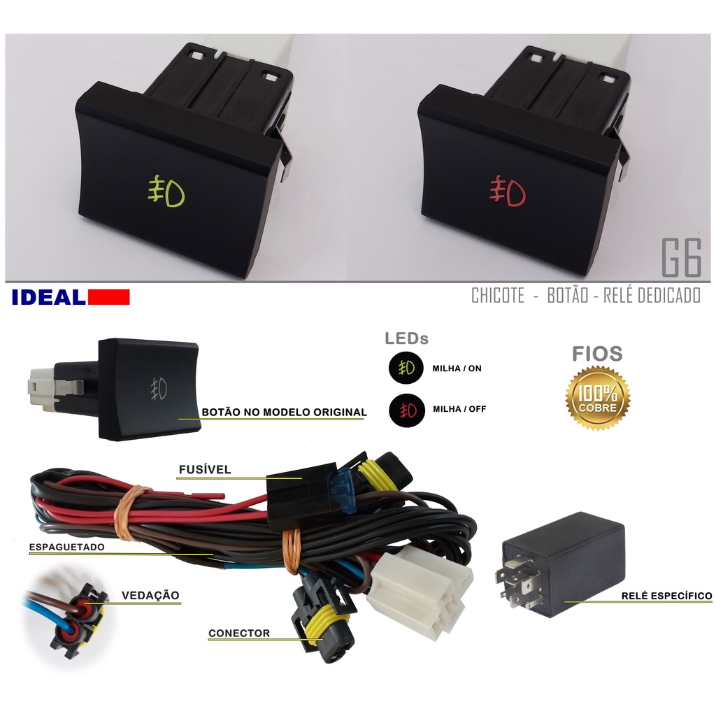 Chicote Farol Milha Do Gol G6 Botão Modelo Original E Relé