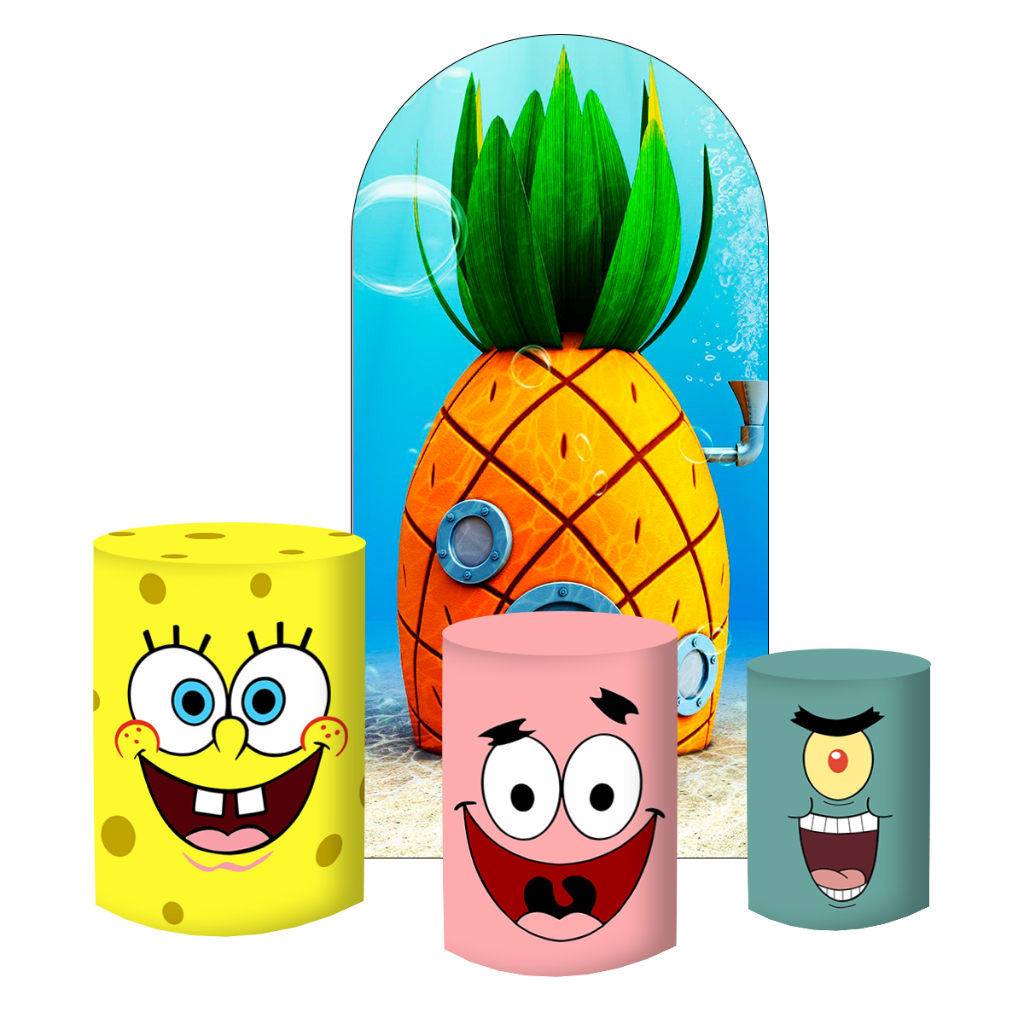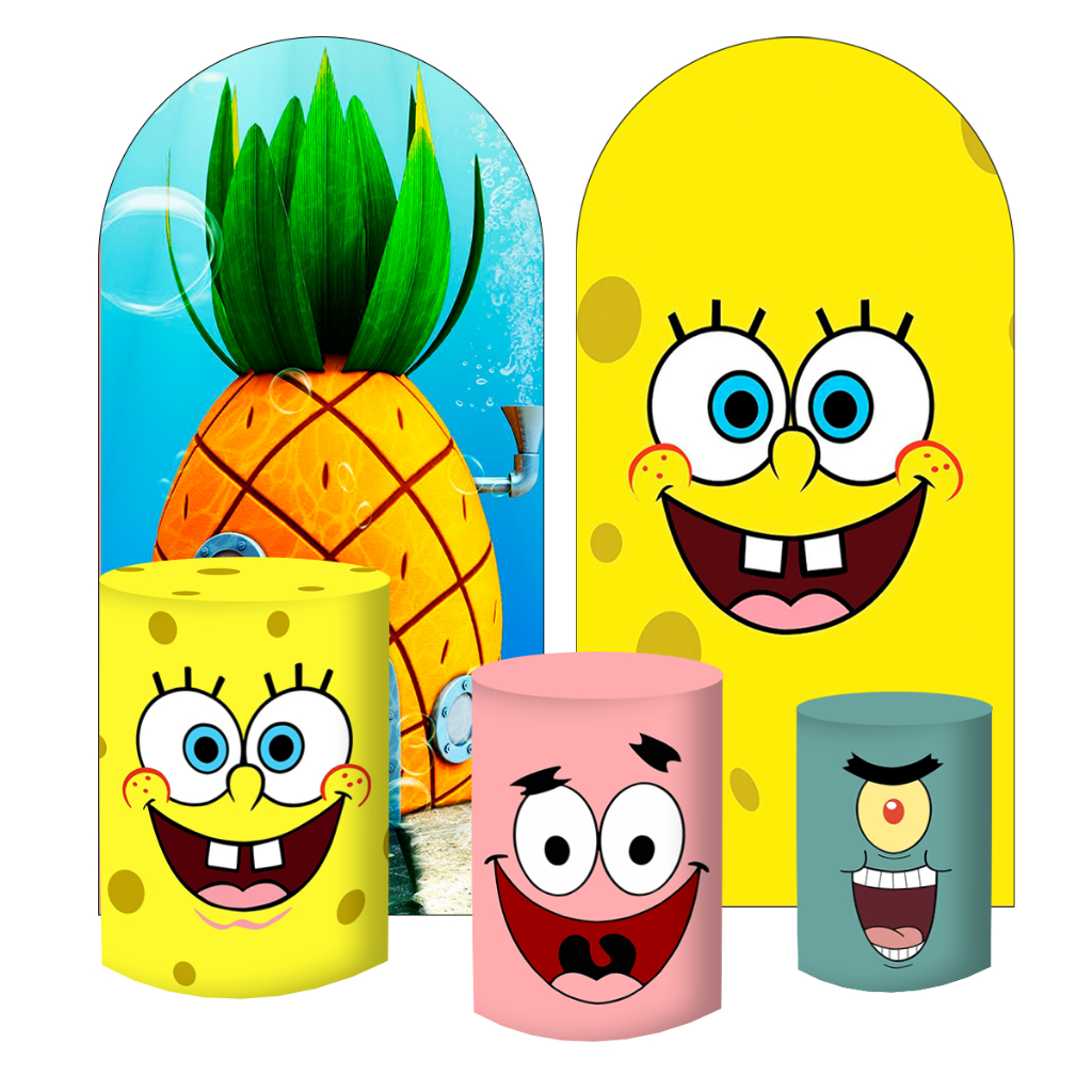 KIT PAINEL VERTICAL LATERAL ROMANO 2X1 + TRIO DE CAPAS DOS CILINDROS BOB ESPONJA
