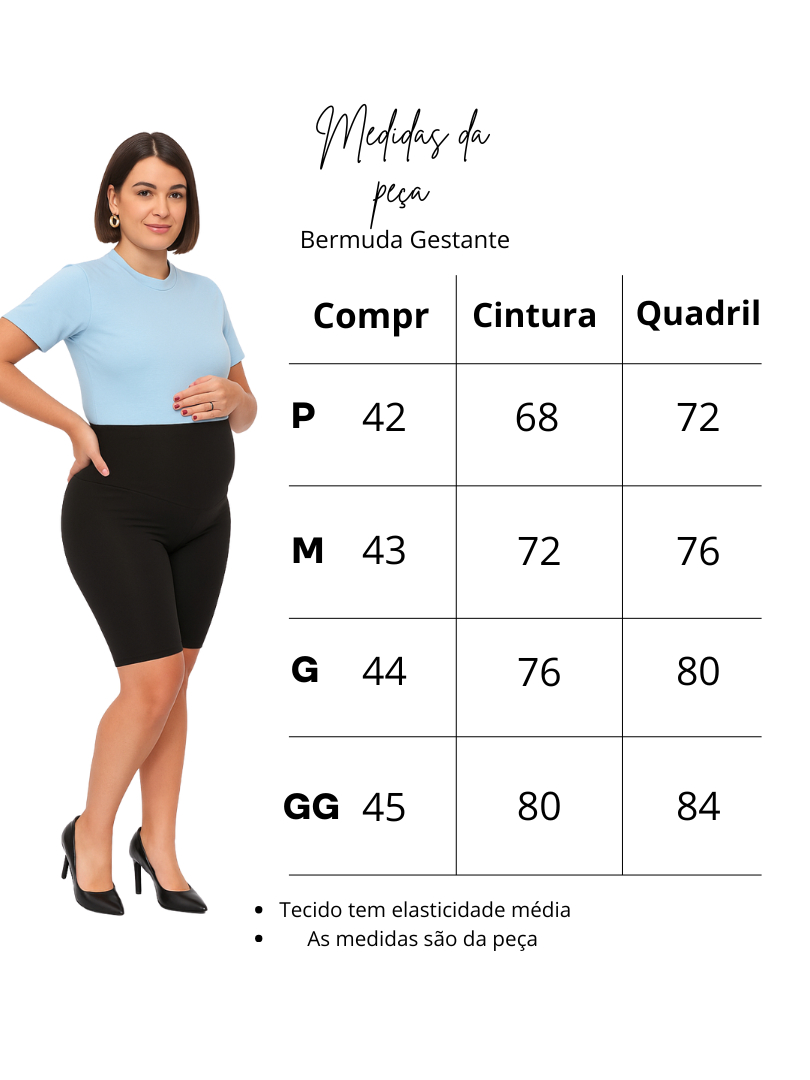 Bermuda Gestante Maternidade Cos Alto Suporte para Barriga Com forro BLACKOUT..