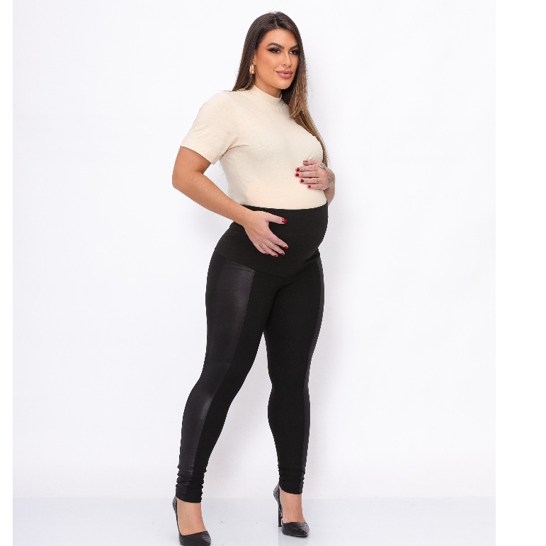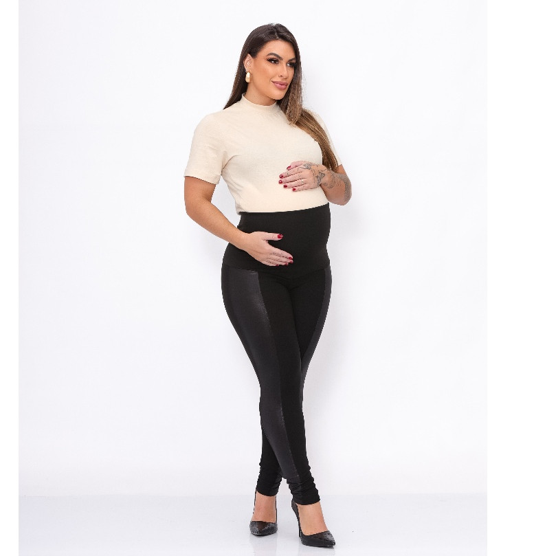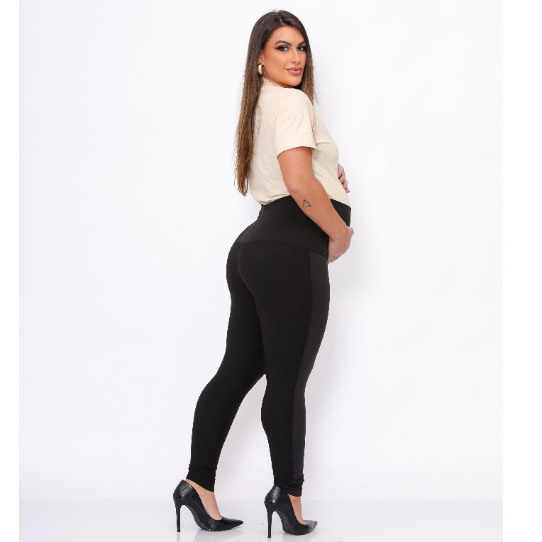 Maternidade Legging Montaria Cirrê Gestante Cós Alto Calça Sustenta Barriga TOP.