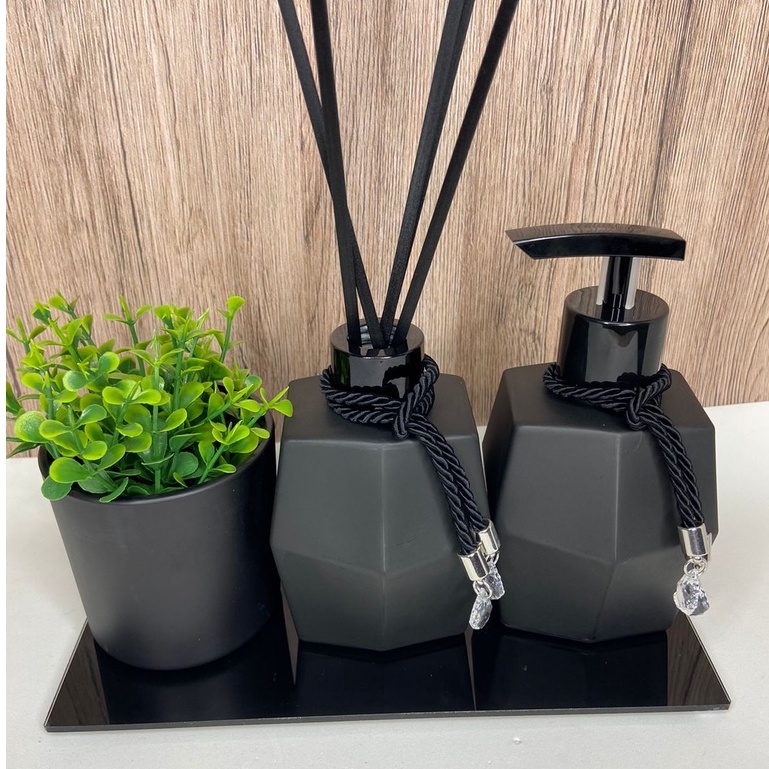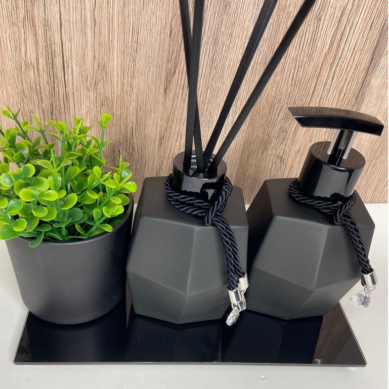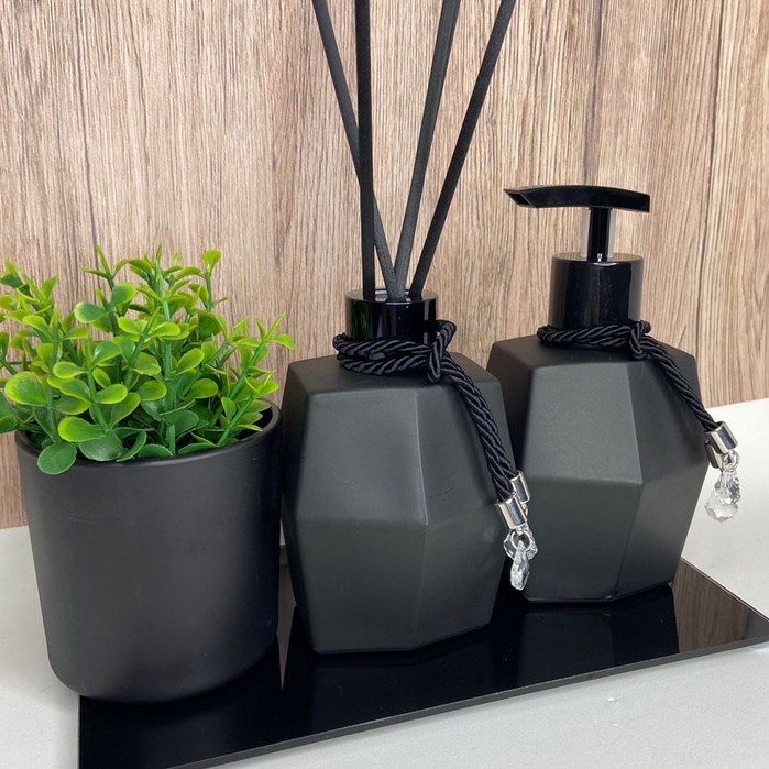 Kit Lavabo Diamante Preto Fosco 250ml / Frasco De Para Difusor De Ambiente e Sabonete Líquido