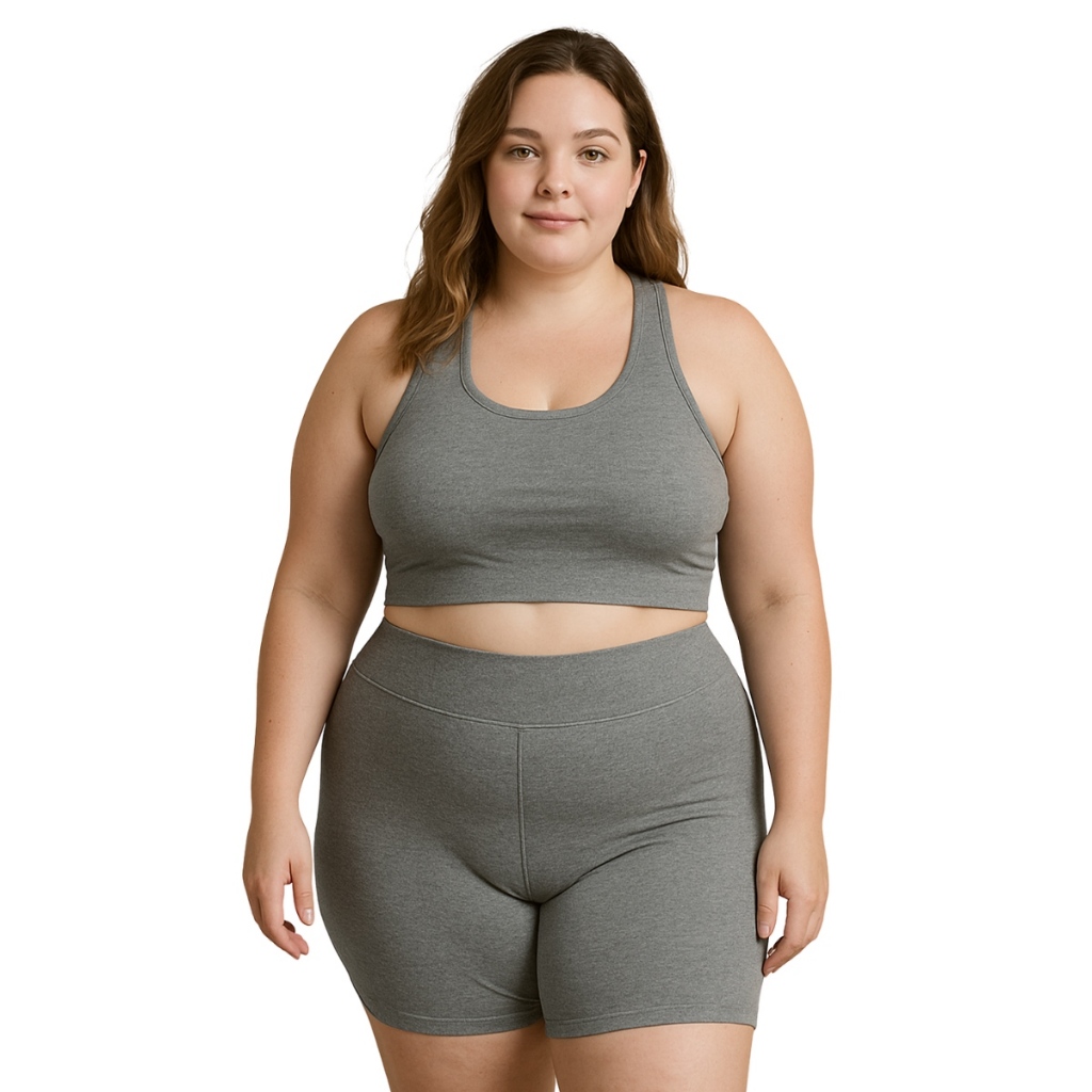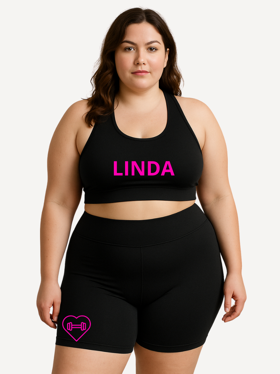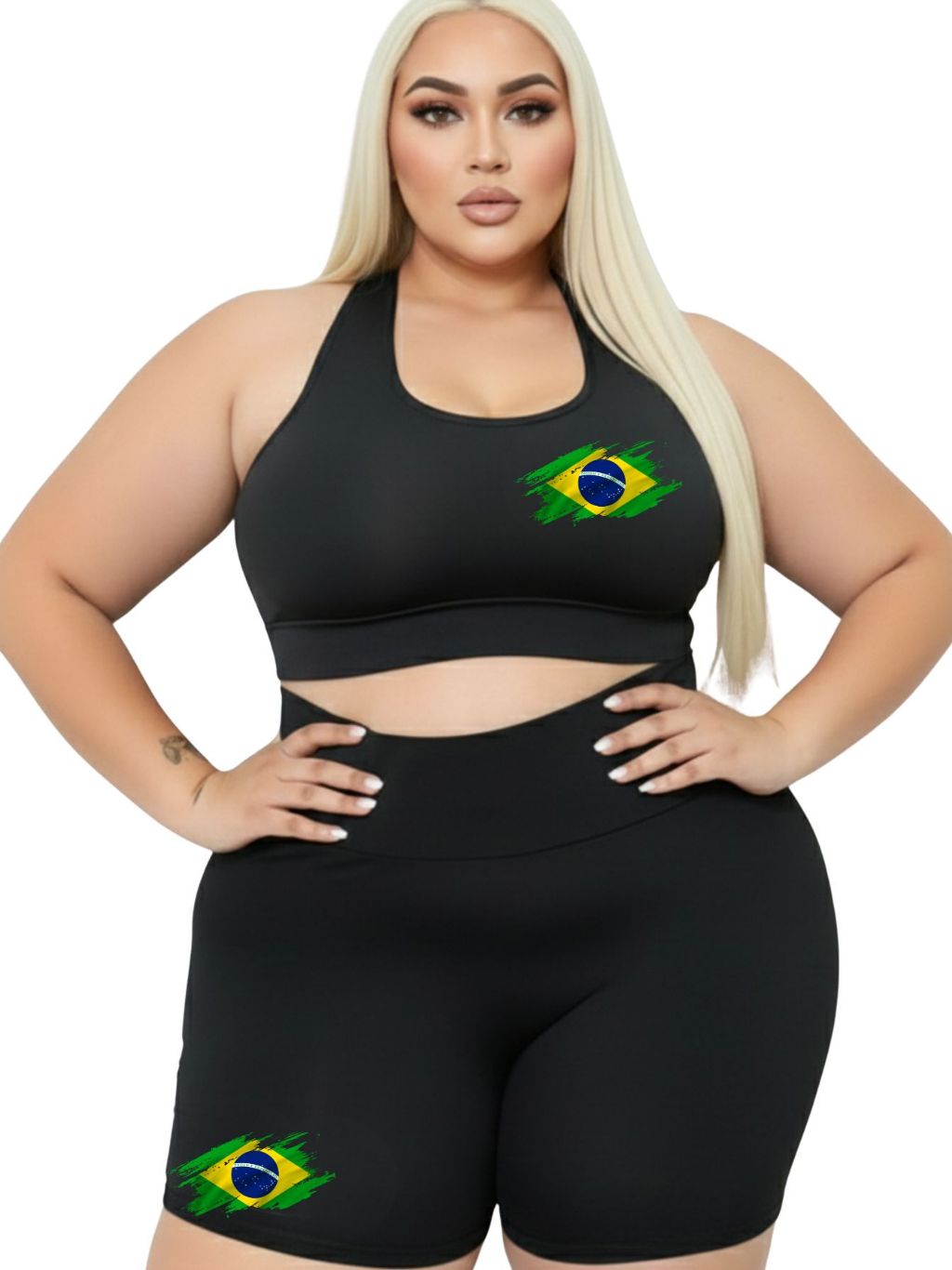 Conjunto Short Meia Coxa + Top Plus Size Estampa Linda Suplex Academia Poliéster GG ao G4