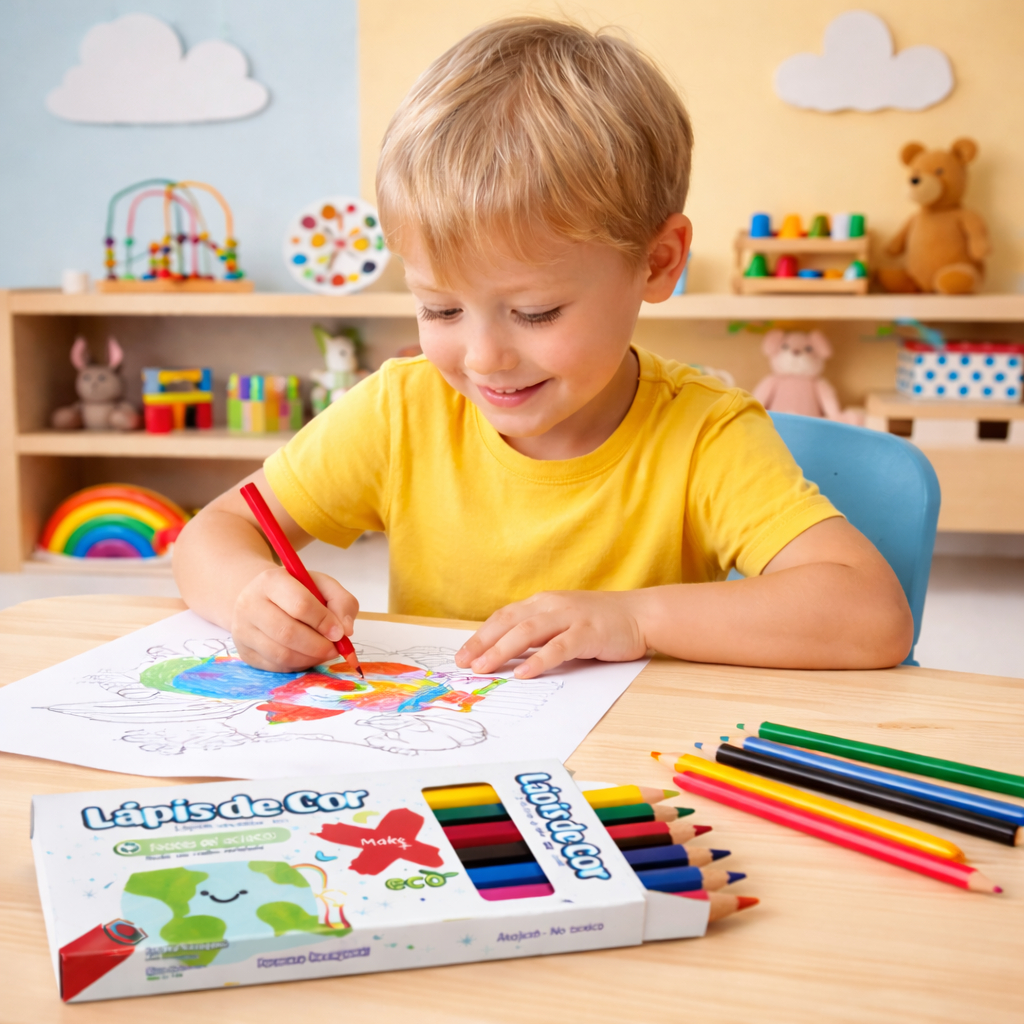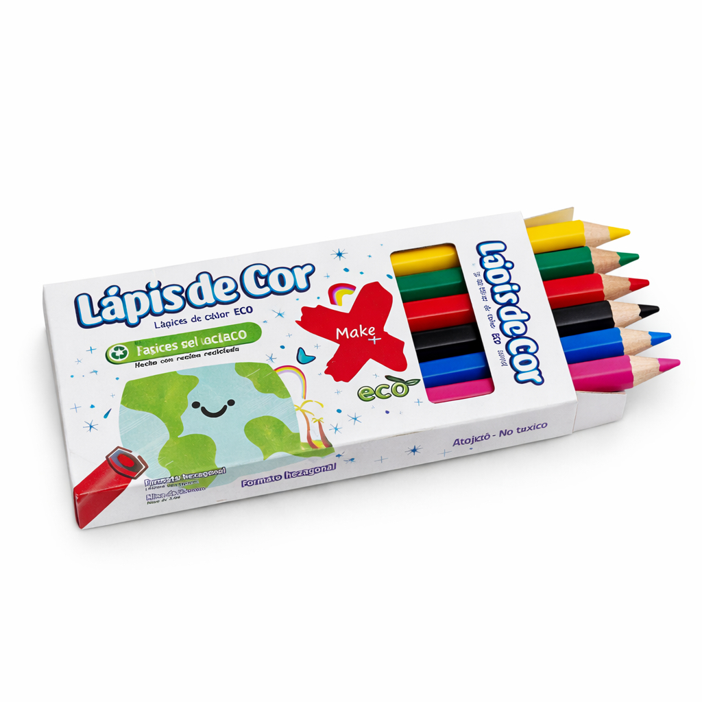Mini Lápis de Cor Sextavado Caixinha 6 Cores Brinde de Festa Kit Colori 10 15 20 25 30 Unidades