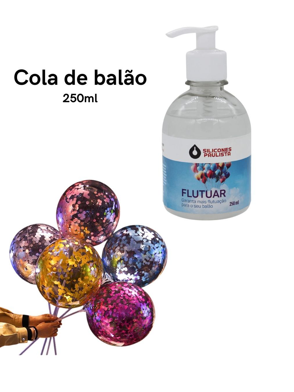 Cola Para Balão 250ml Gel Confete Bubble Bolha Flutua Silicone Paulista Hi float