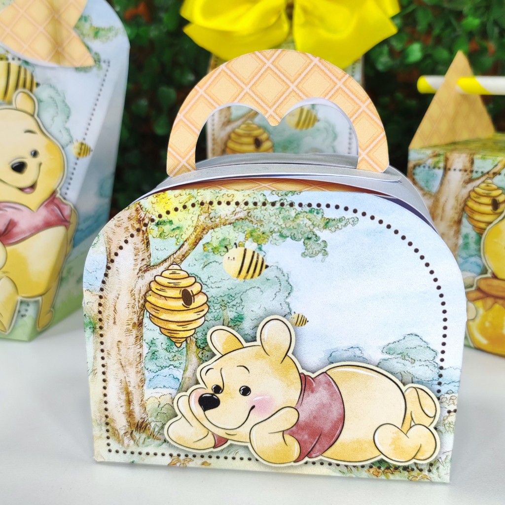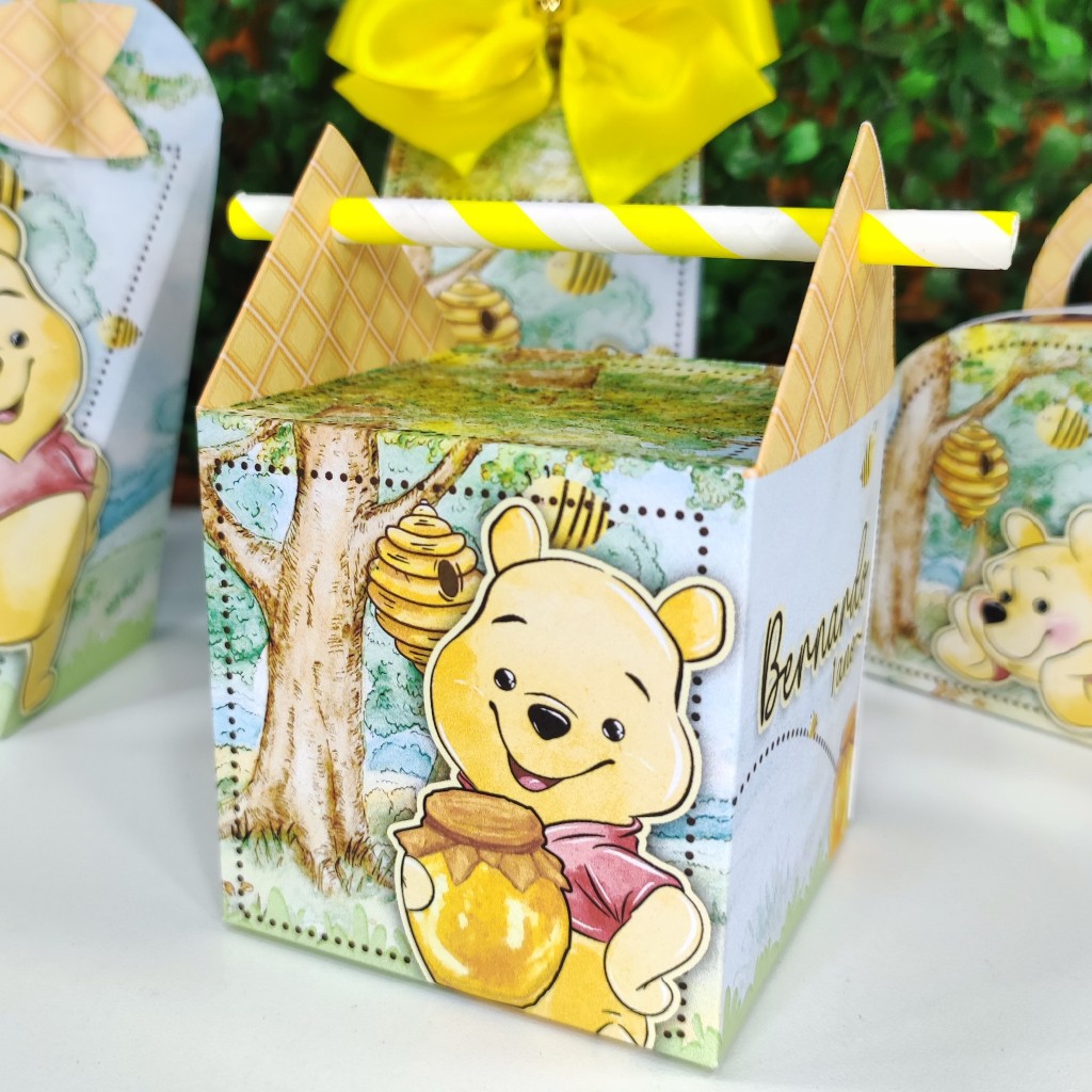 Lembrancinha Personalizada Ursinho Pooh Aquarela Kit Festa Caixinhas Pegue e Monte