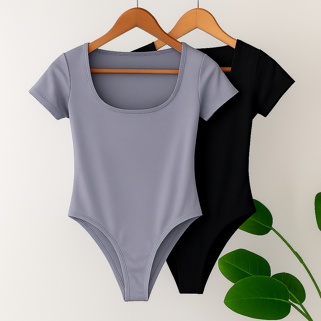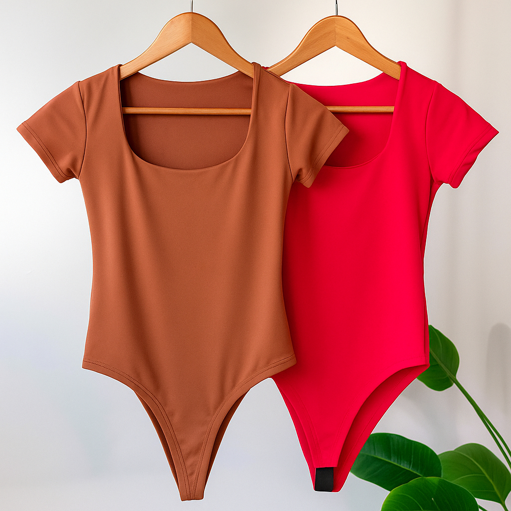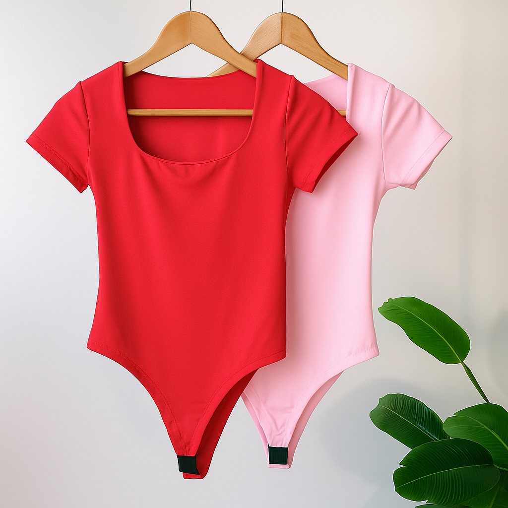Kit 2 Body Feminino Decote Quadrado Manguinha Curta Suplex Verão