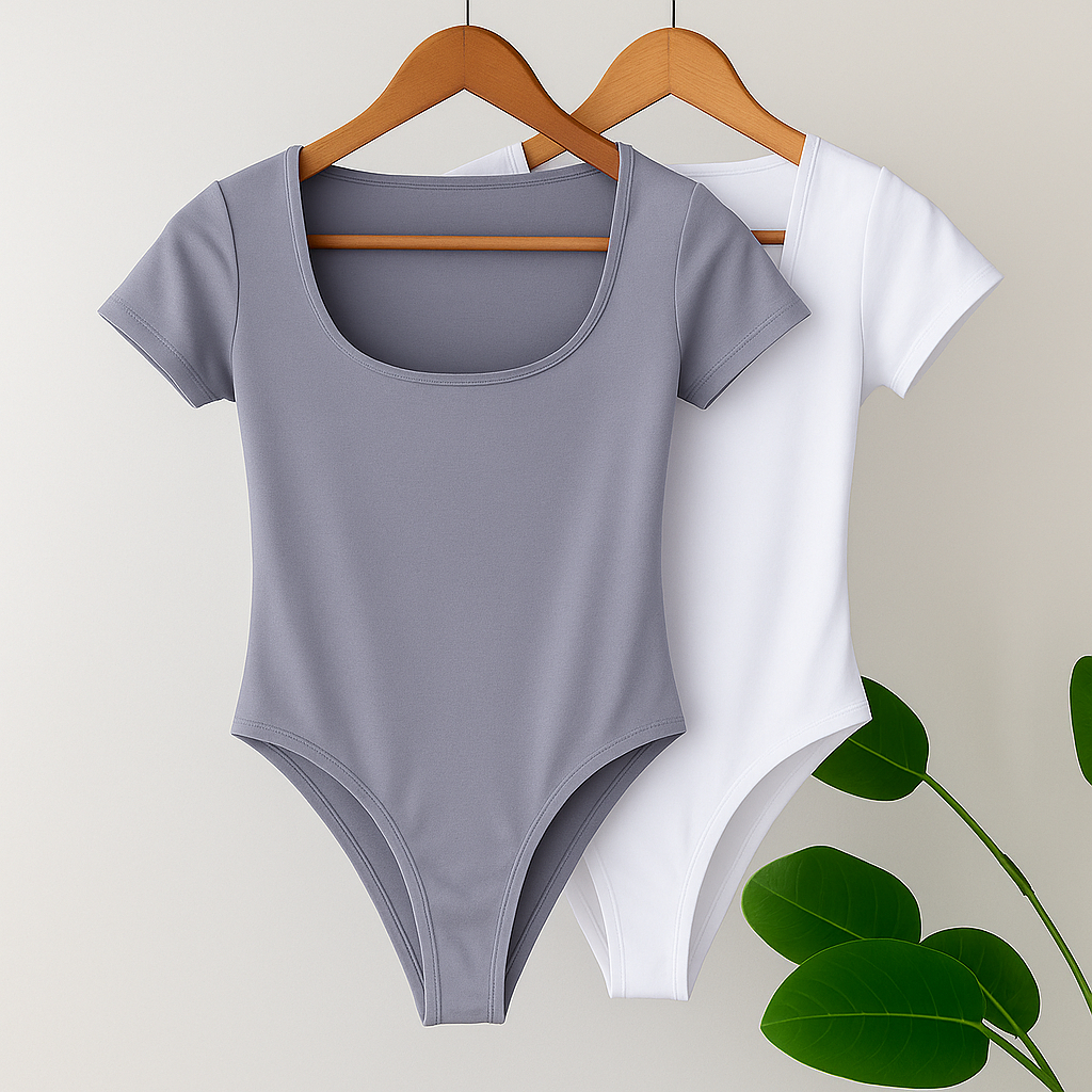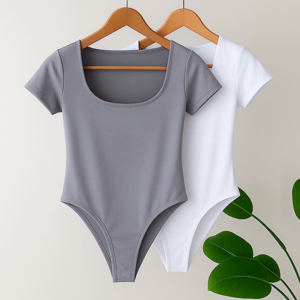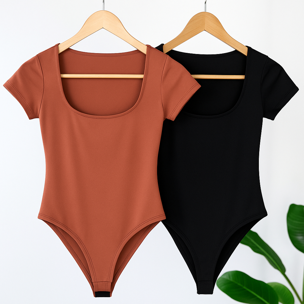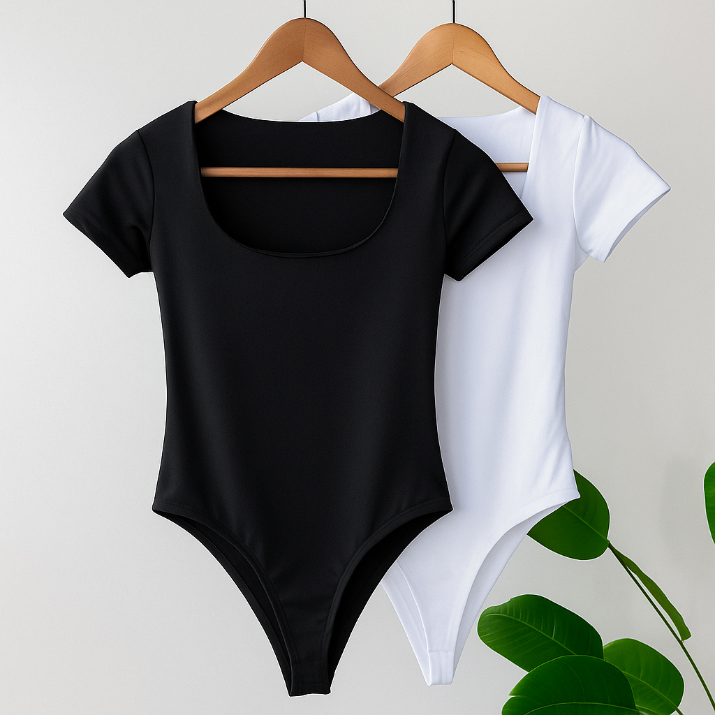 Kit 2 Body Feminino Decote Quadrado Manguinha Curta Suplex Verão