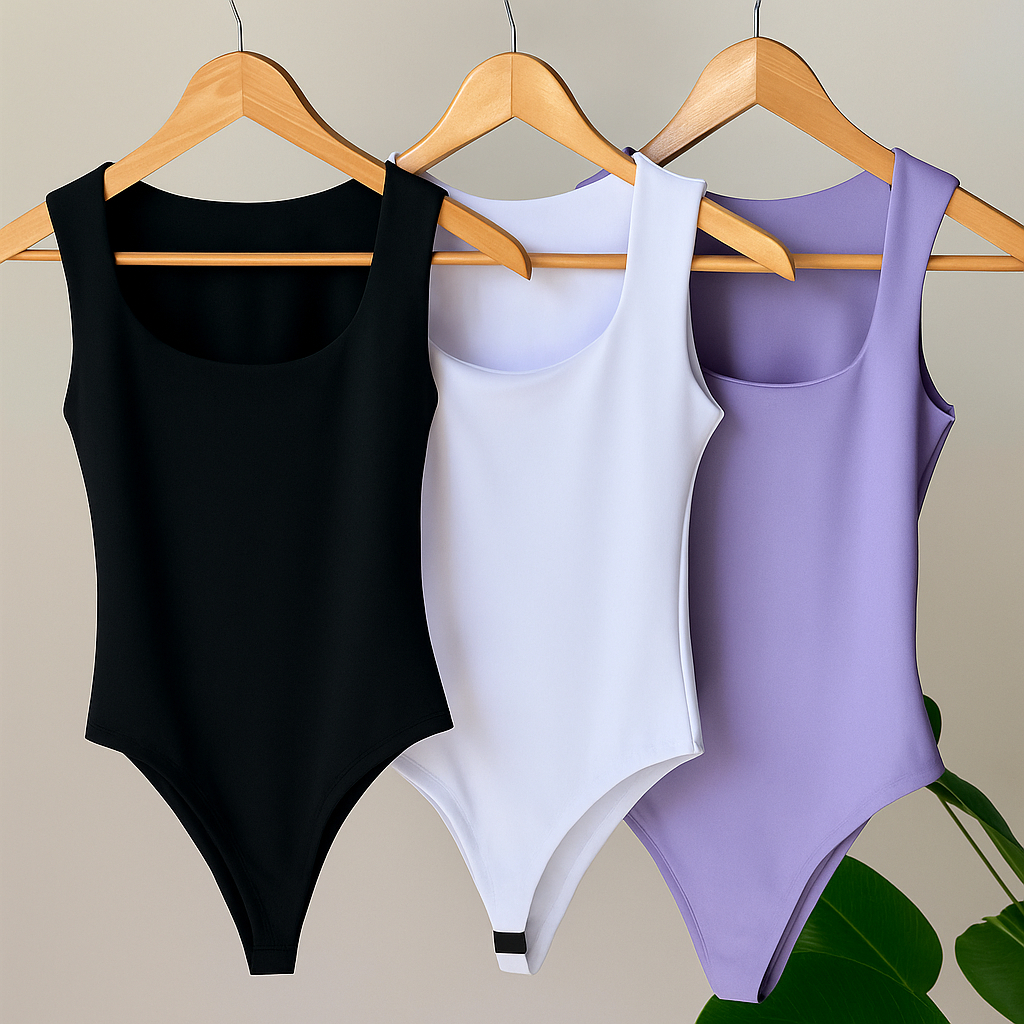 Kit 3 Body Feminino Decote Quadrado Alça Larga Regata Suplex Liso Casual