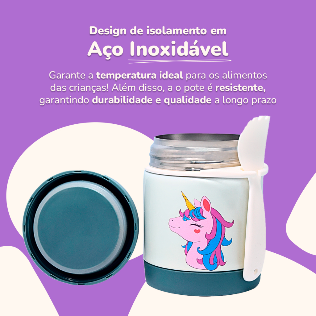 Pote Térmico Infantil Bebê Inox Com Colher Papinha Fruta