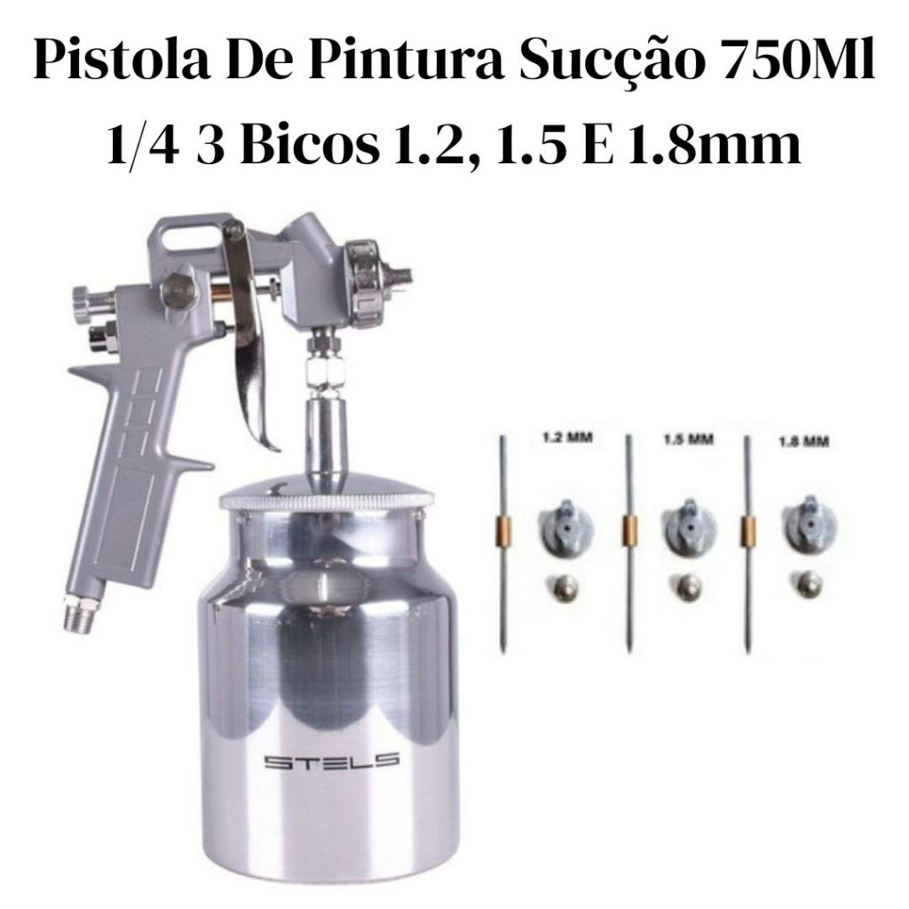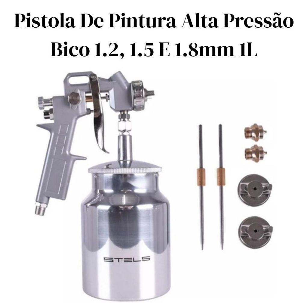 Pistola De Pintura Alta Pressão Bico 1.2, 1.5 E 1.8mm 1L