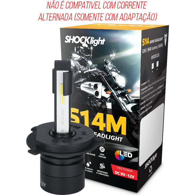 Lâmpada Super Led Shocklight 32w S14m s14 Moto Nano H4 6000k não serve em corrente alternada