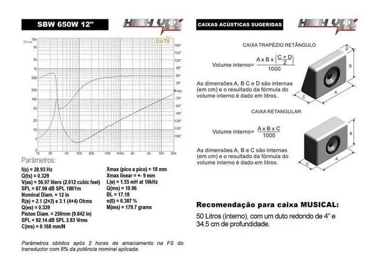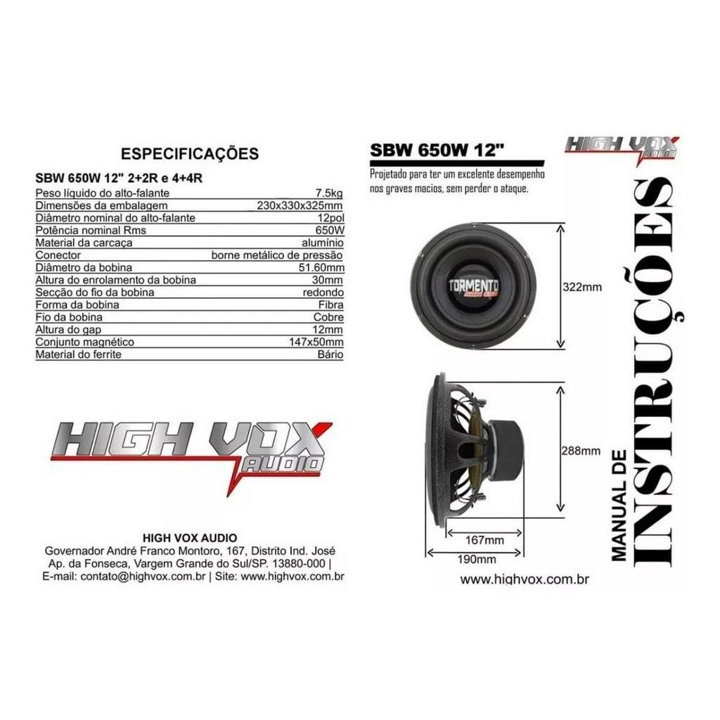 Alto Falante Sub Woofer Tormento 12 Pol. Sbw 650wrms 2+2 Ohm
