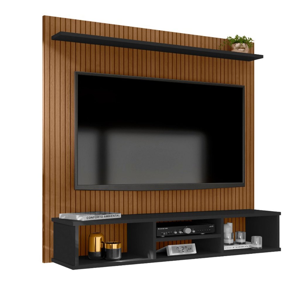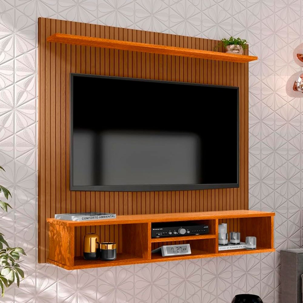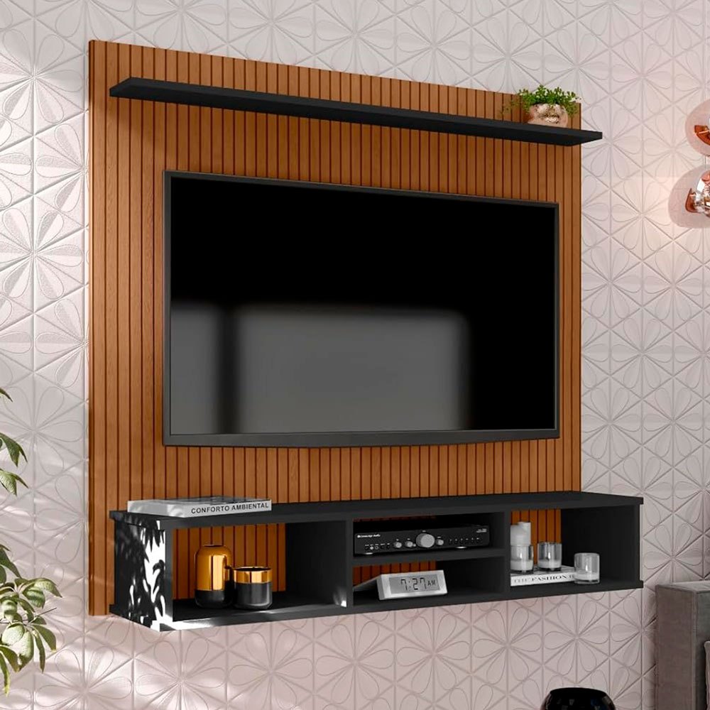 Painel Sala Tv 50 Pol Sol do Everest Ripado 3 Nicho 1 Prateleira Suspensa Cores